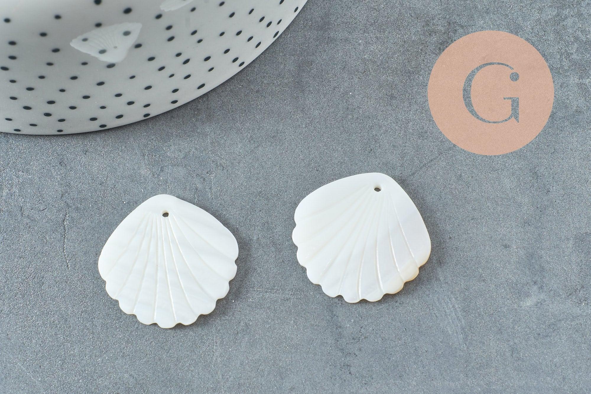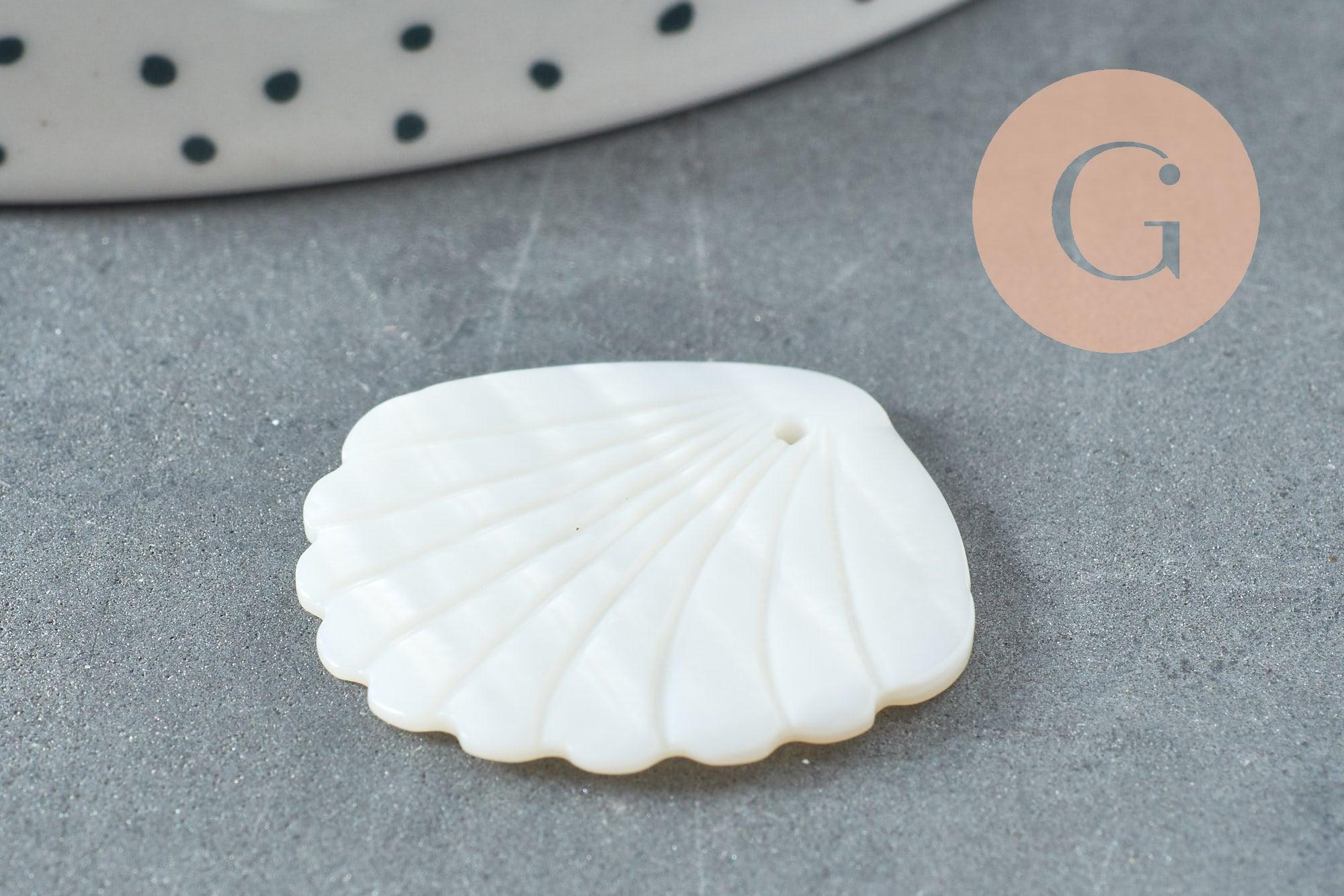 Pendentif coquillage nacre blanche naturelle 35mm, x2 (G9653)