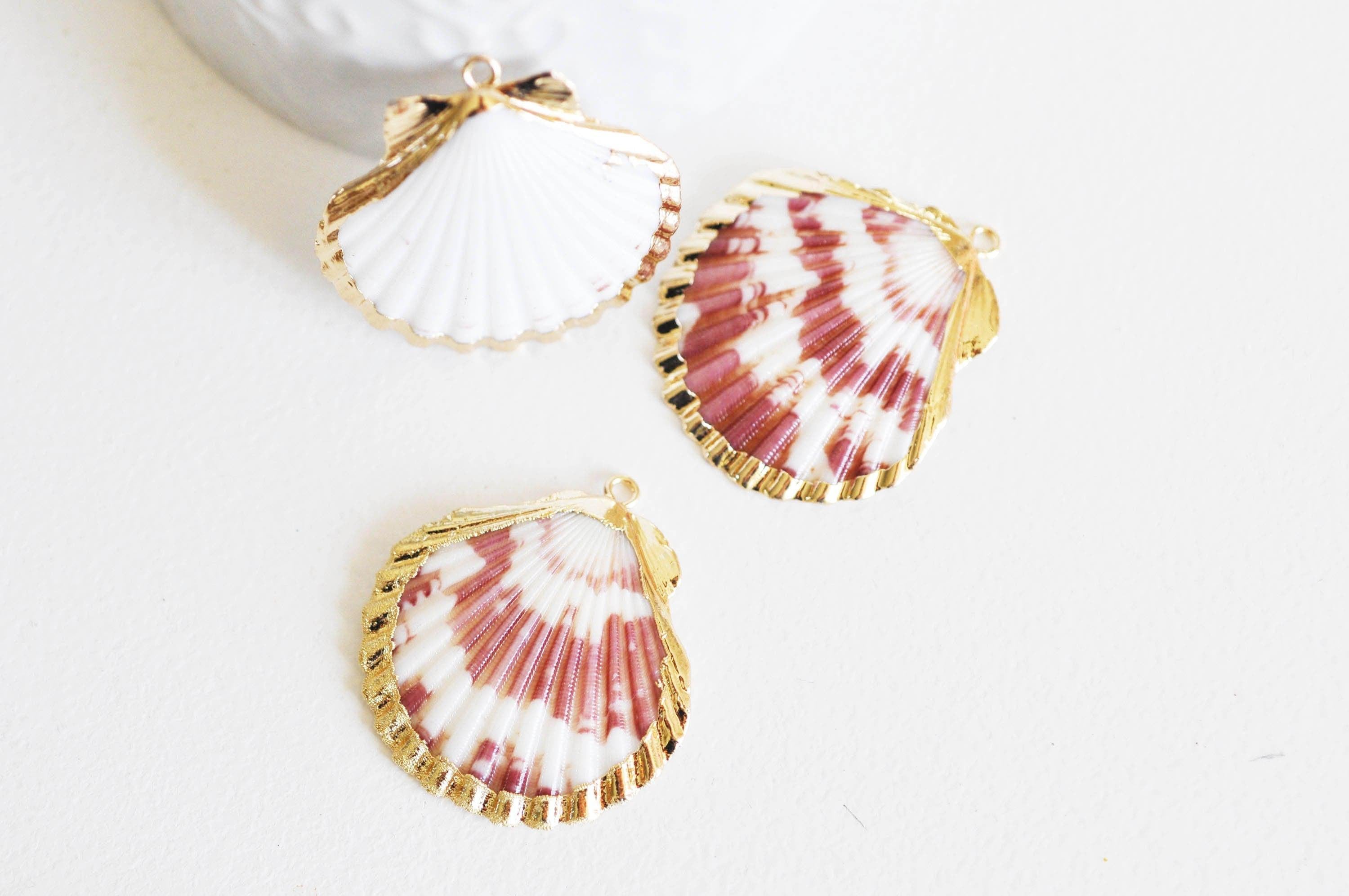 Natural shell pendant golden shell, creative supply, golden pendant, jewelry creation, shell jewel, gold shell, 33-54mm