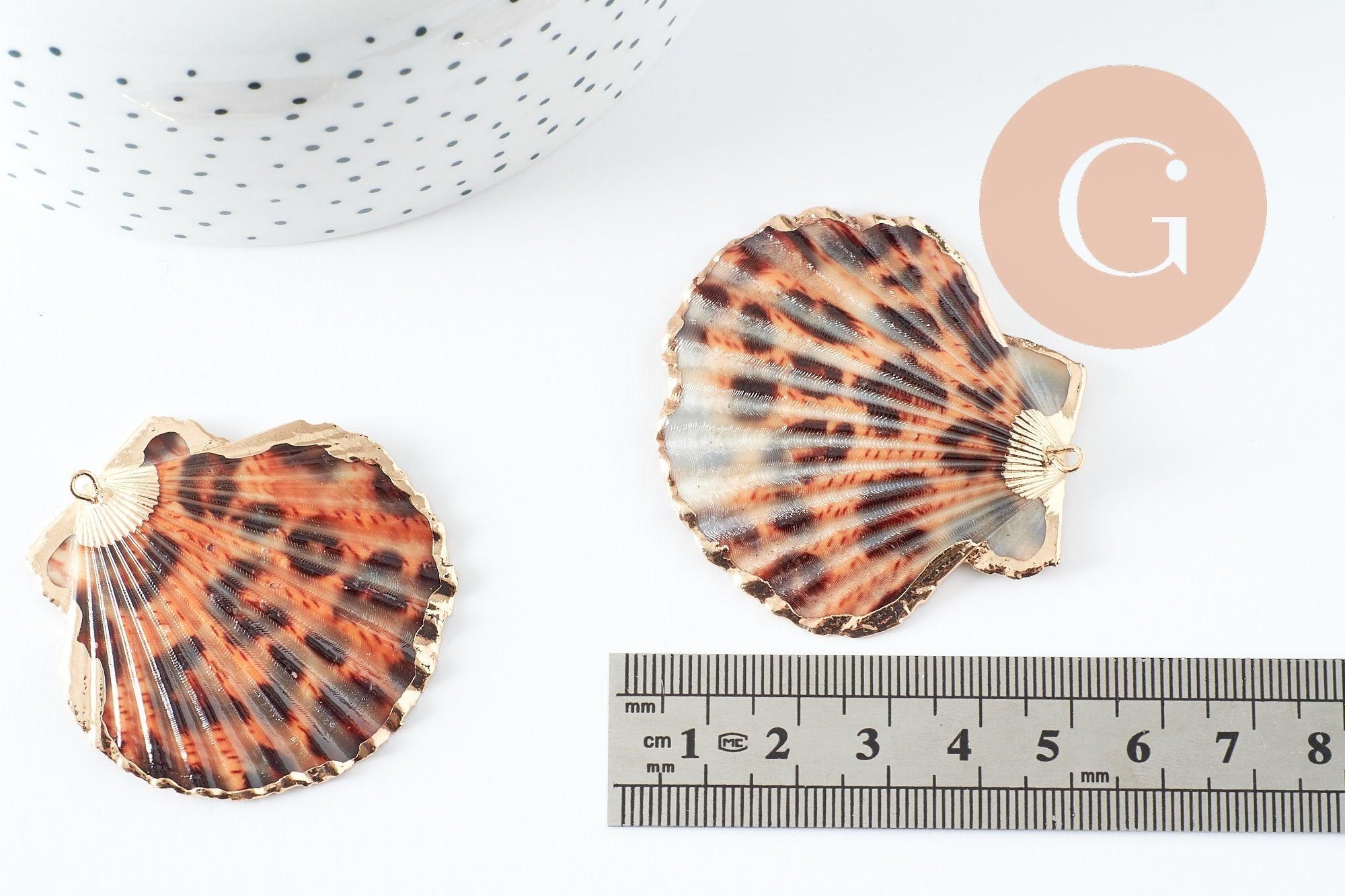 An elegant gold pendant made from natural shell painted with a leopard pattern.