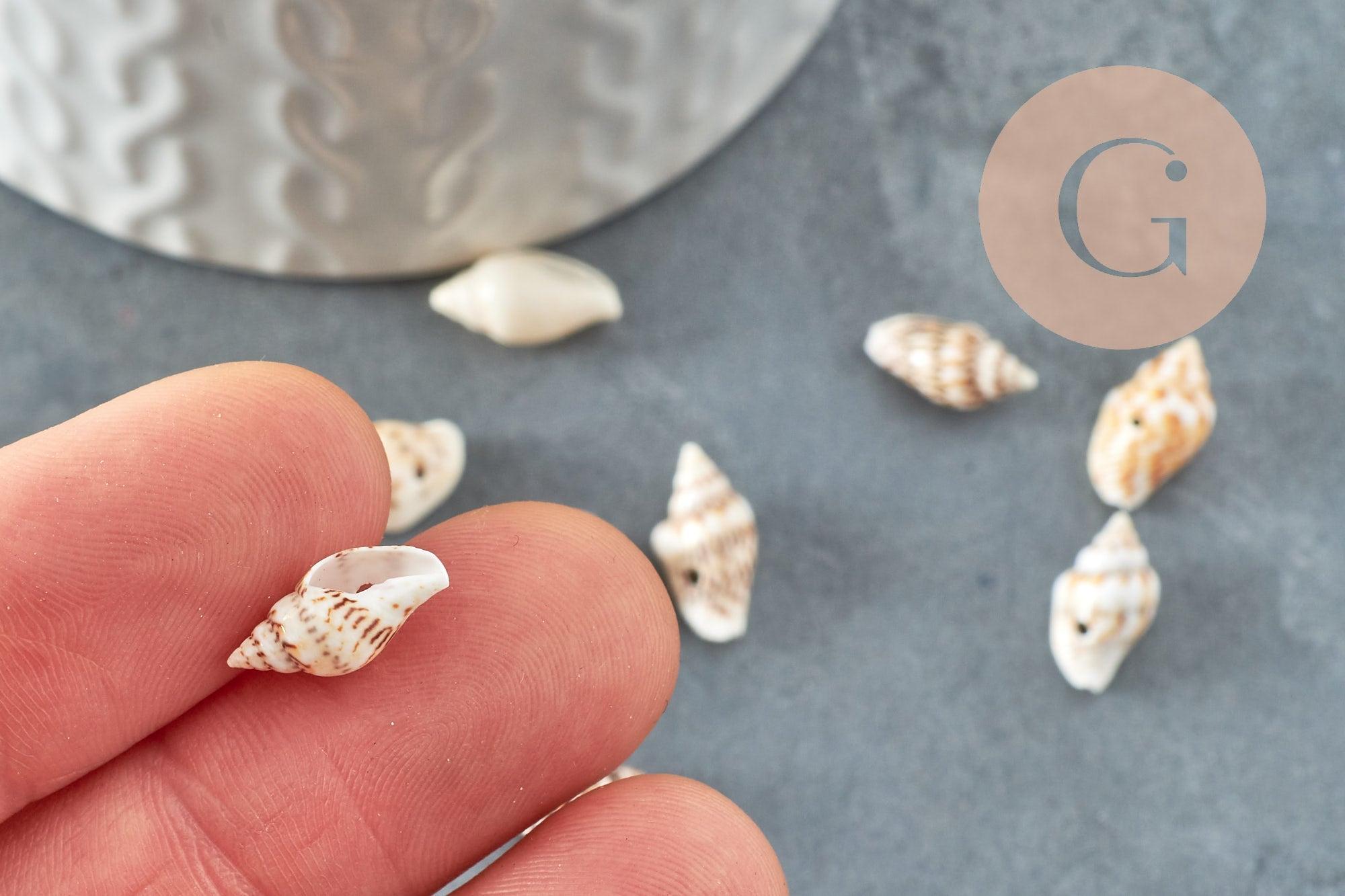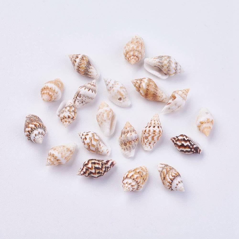 Brown and white natural shell pendant, pierced shell shell pendant, jewelry creation, jeweled shell, set of 20