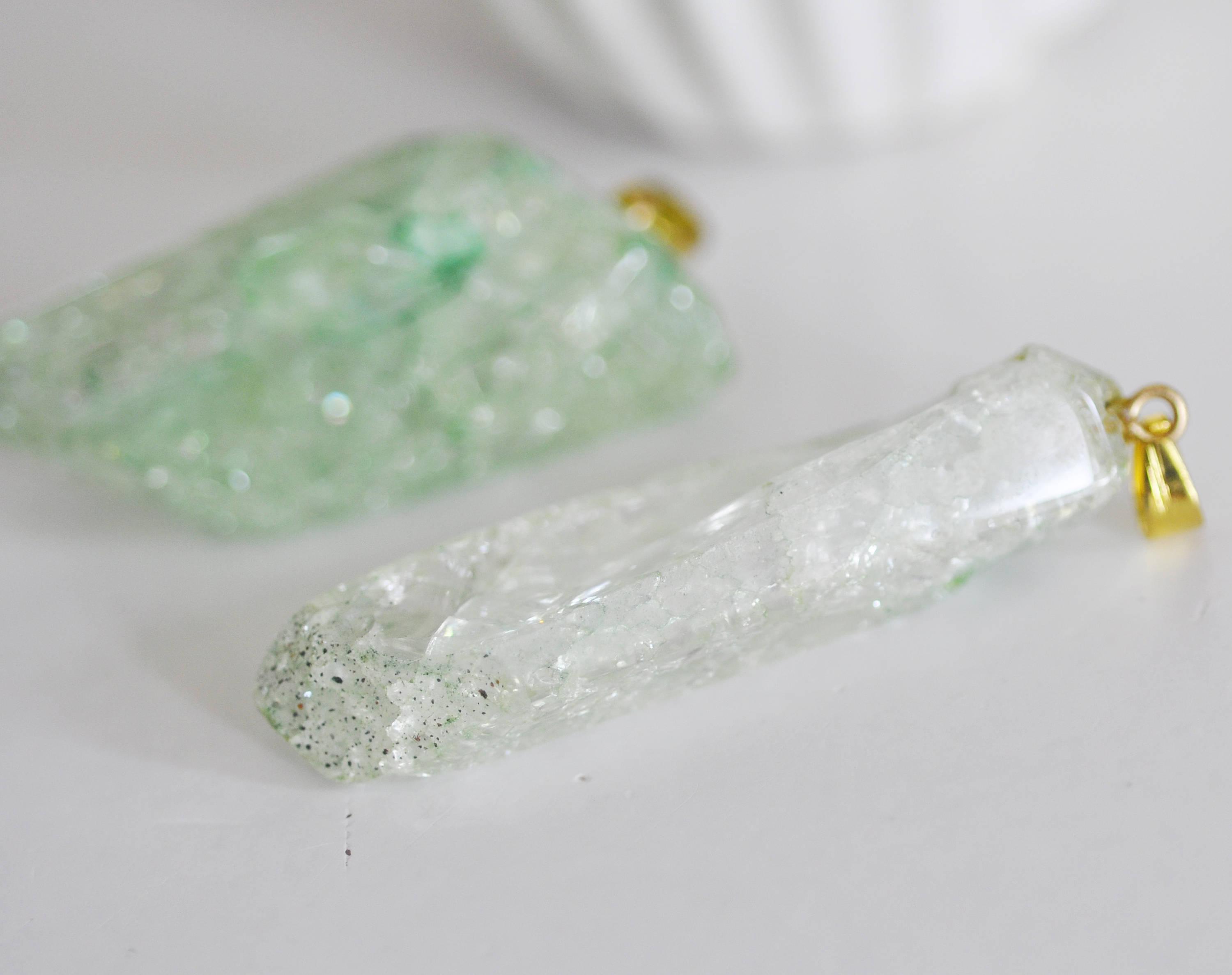 Fall for this magnificent tinted crackle crystal pendant with its golden support. You can create magnificent necklaces using this very trendy pendant. Width: 31-50mm Length: 10-23mm Thickness: 10-18cm Hole: 7x4mm. Please note: each stone being by definition natural, they may...