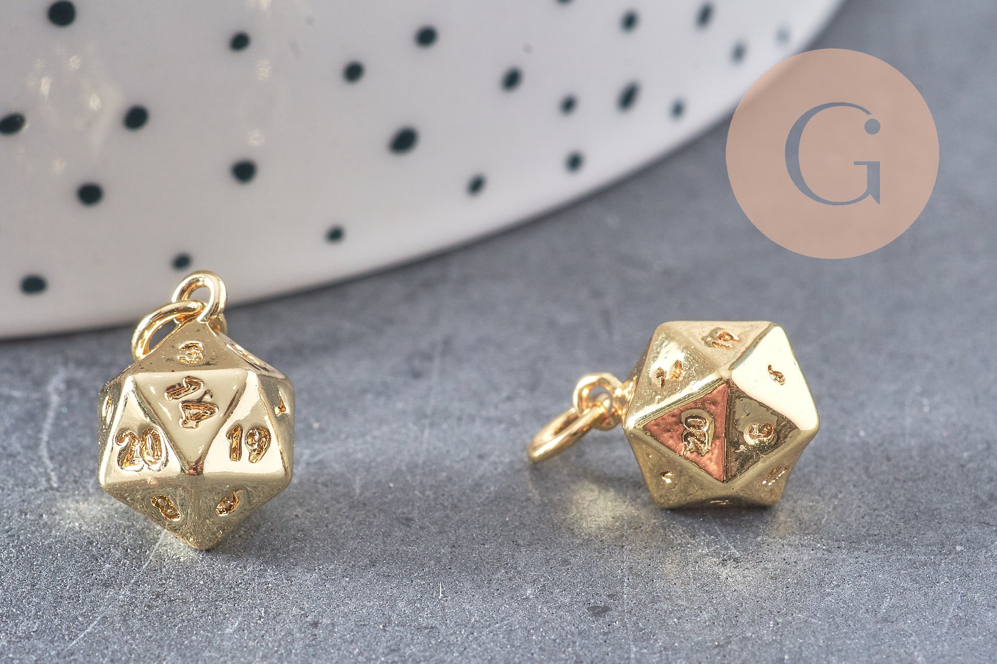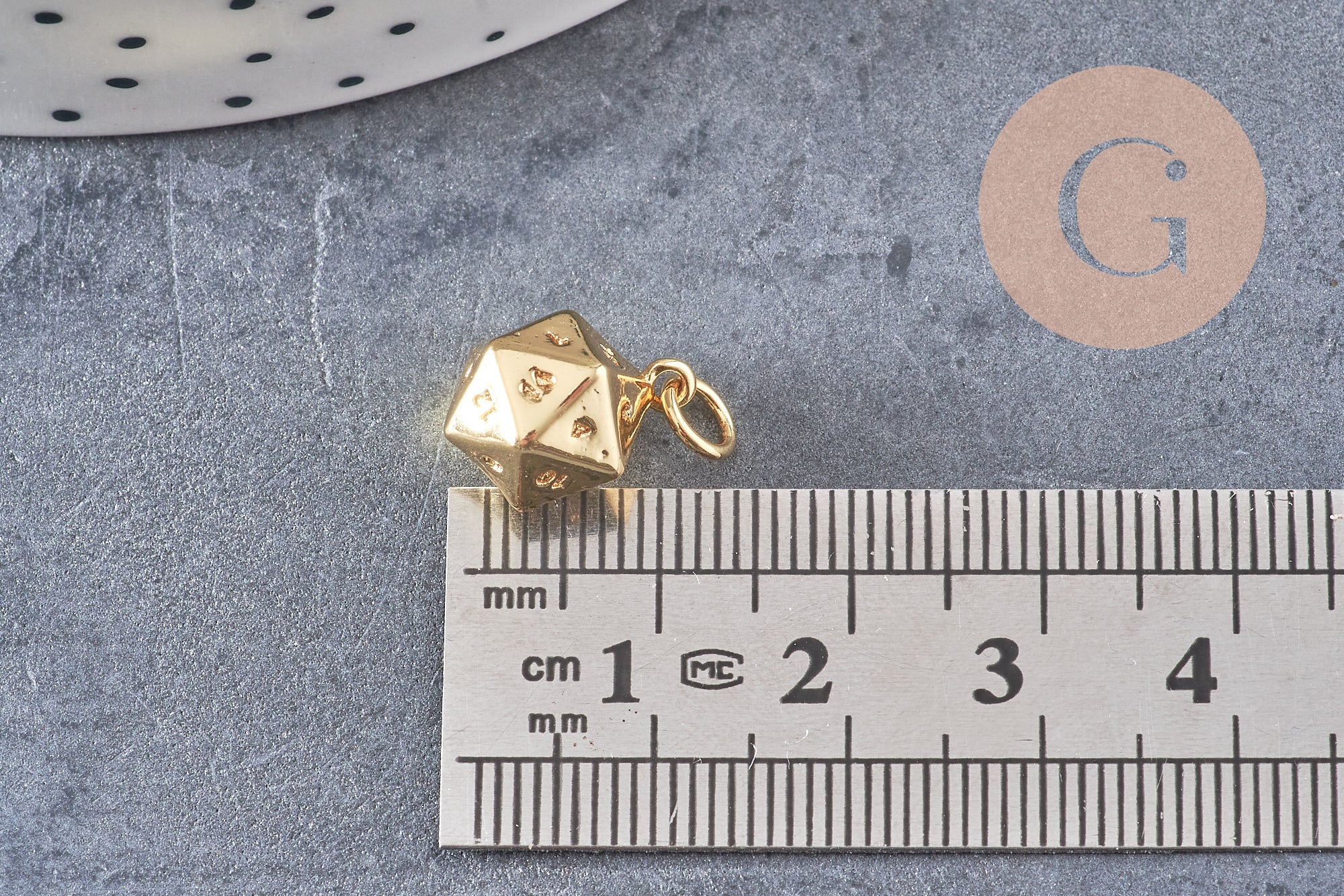 18K gold 20-sided dice pendant, gold game pendant, lucky charm, gold brass, Game pendant, 13.5mm, each