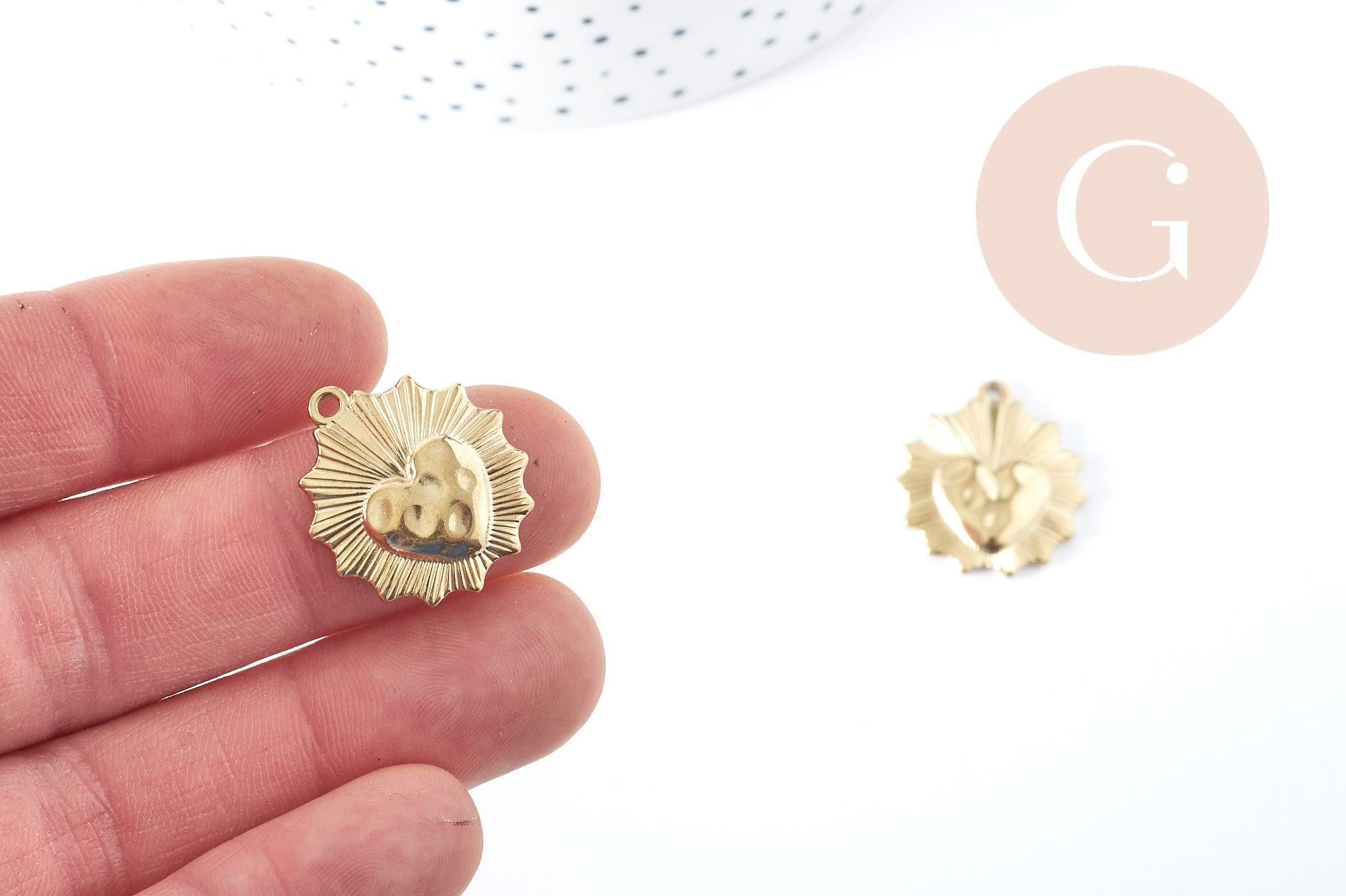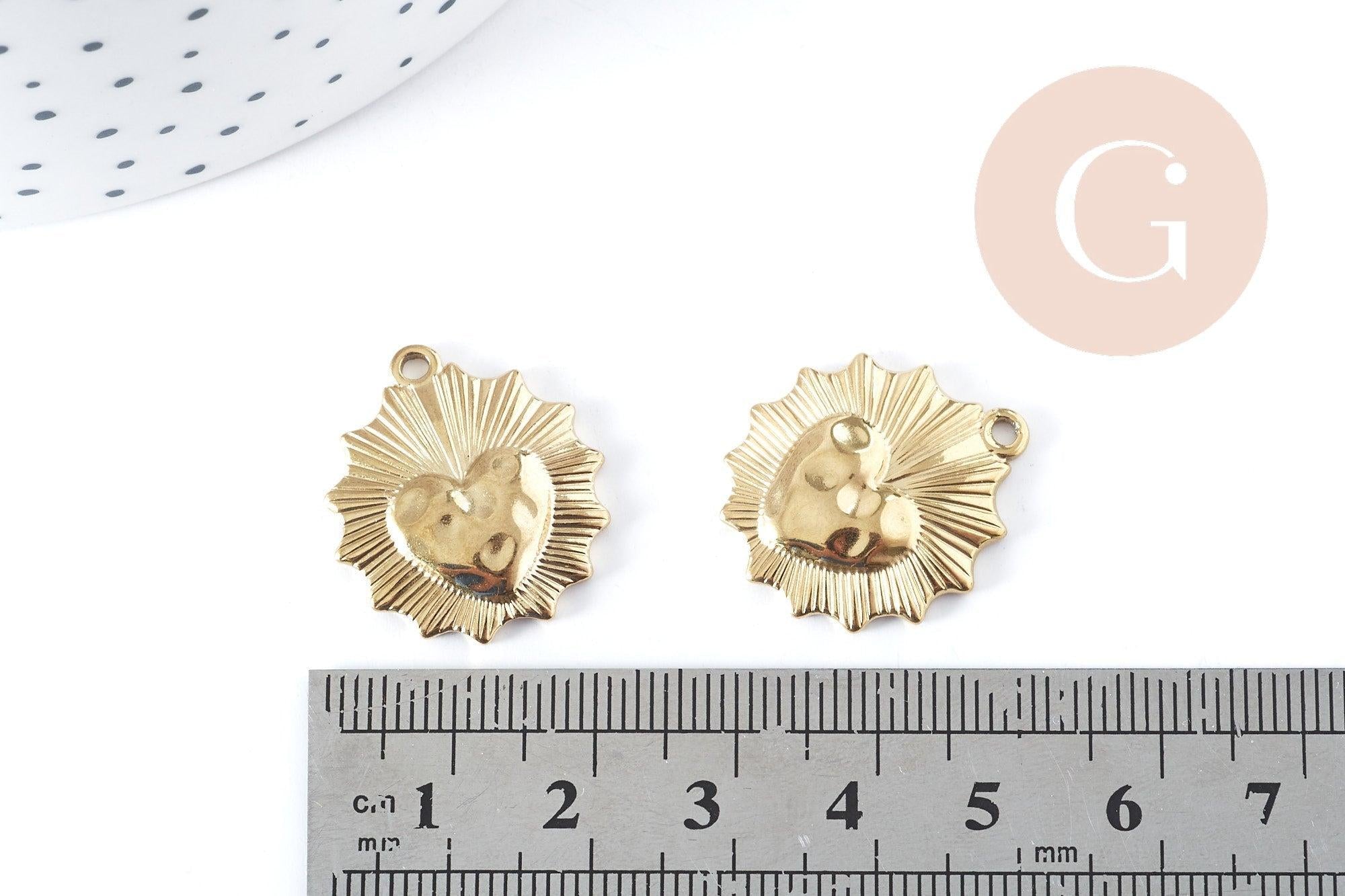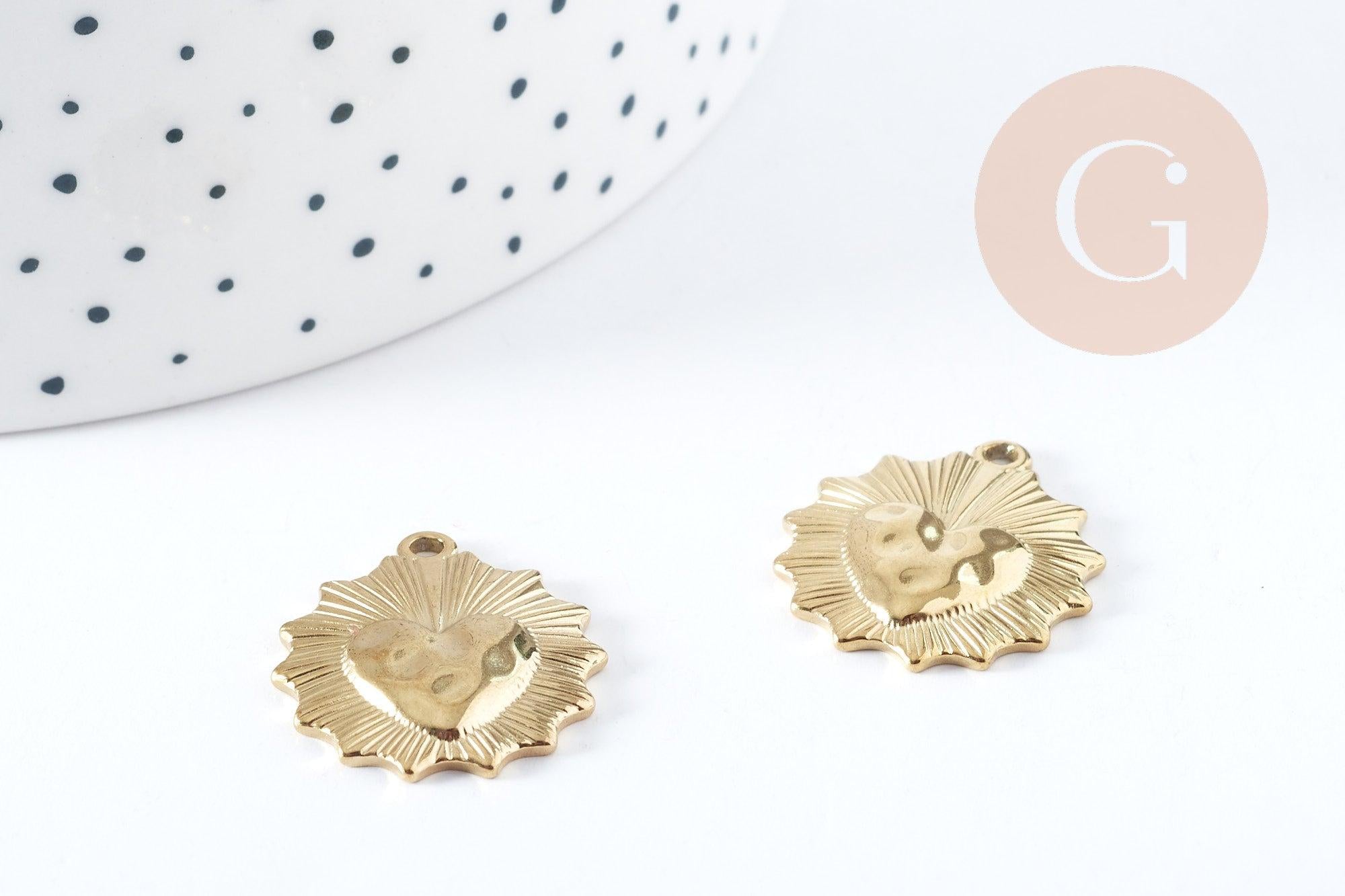 Adopt this magnificent gold-plated 201 stainless steel heart pendant , surrounded by a bright sun, in which will allow you to make pretty chic pendants. Representing a sparkling love, you can make a costume jewel of love.