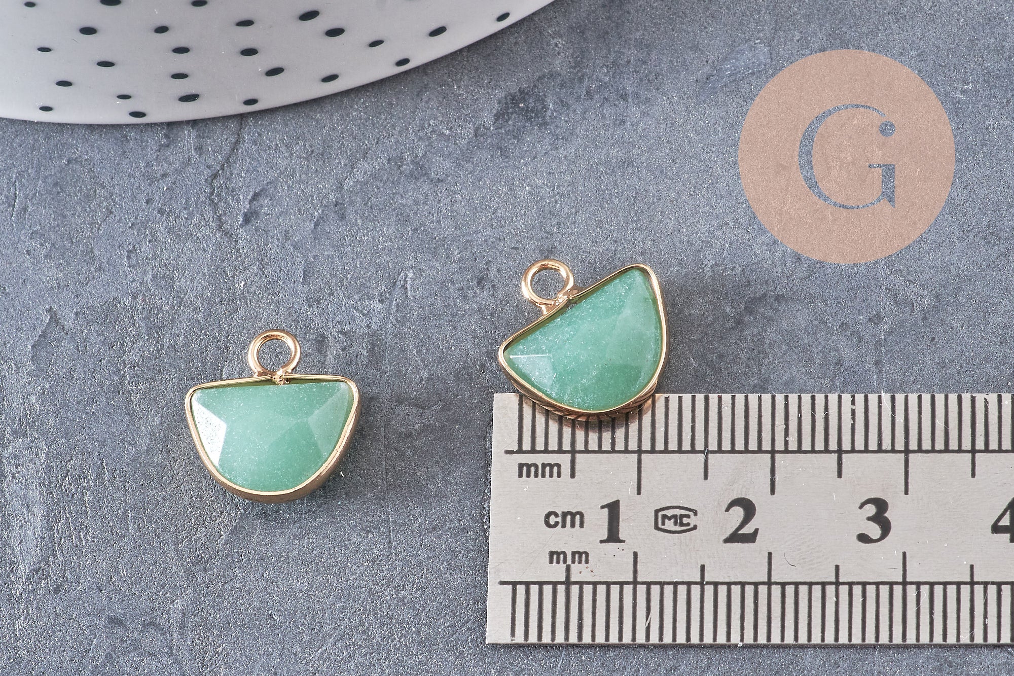 Fall for this green half-moon pendant in faceted natural green aventurine, to create very trendy bohemian chic jewelry.