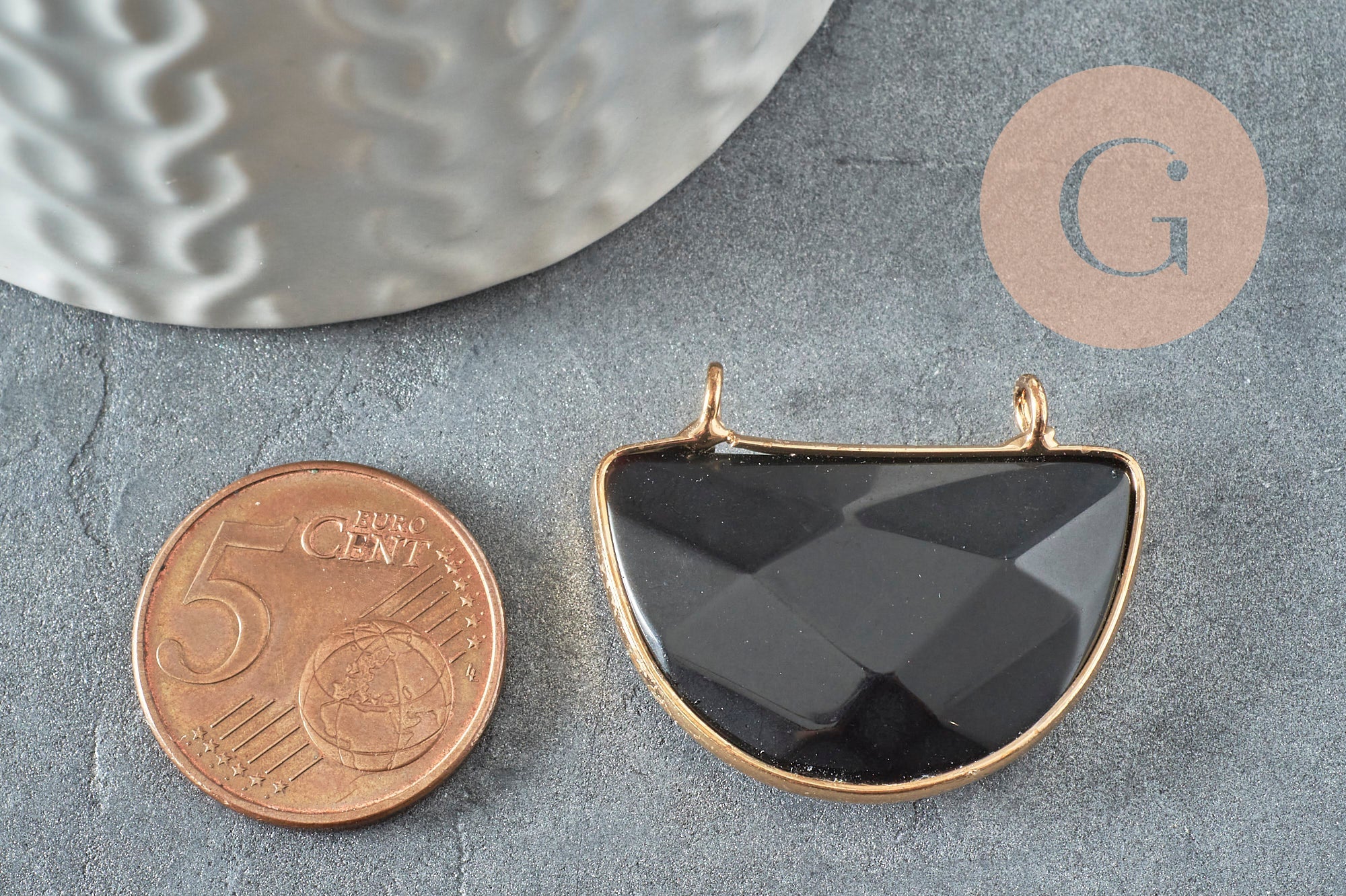 Half-moon pendant in natural black jade tinted in gold-plated brass 32mm, natural stone jewelry creation, x1 G5887