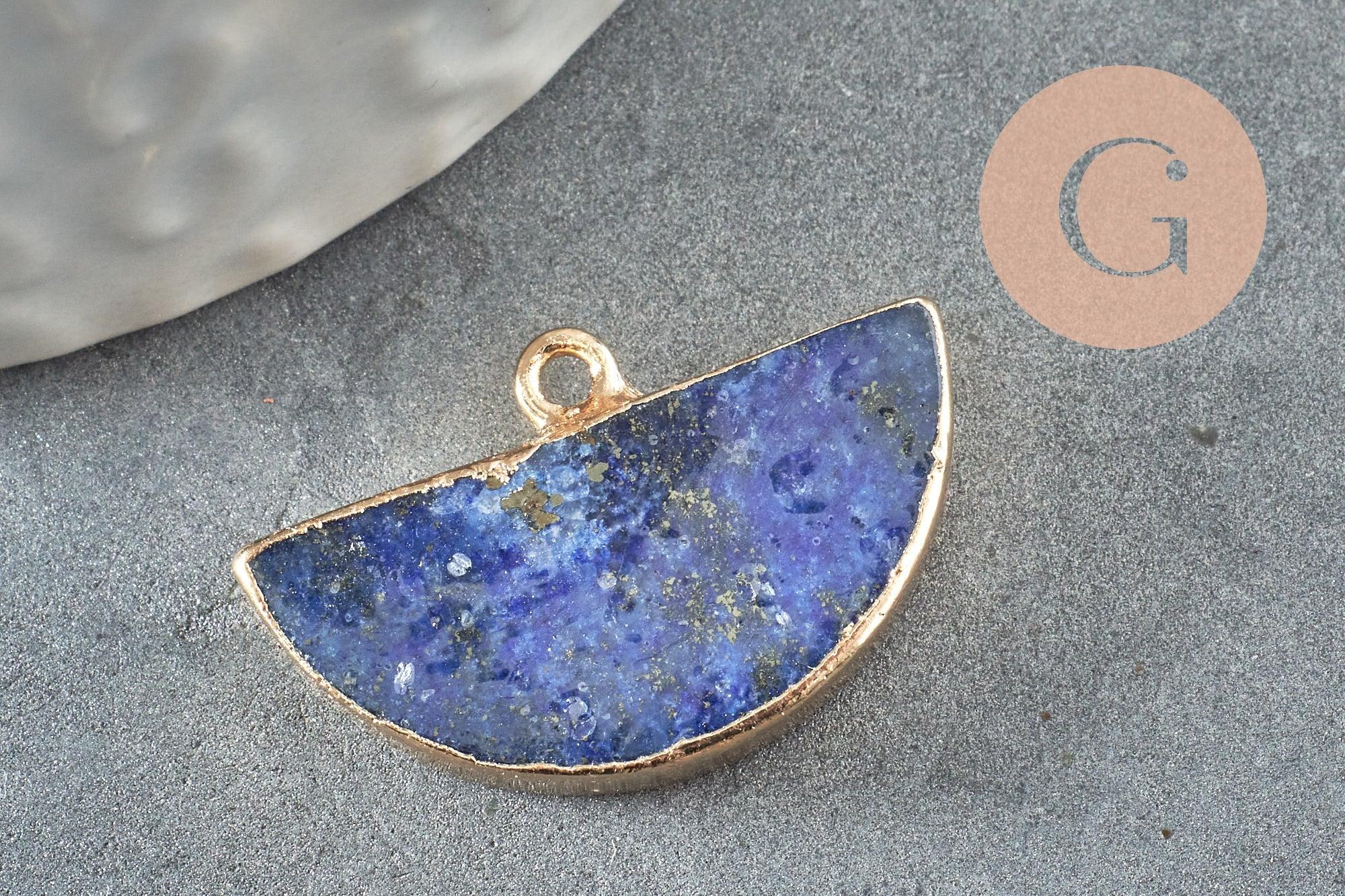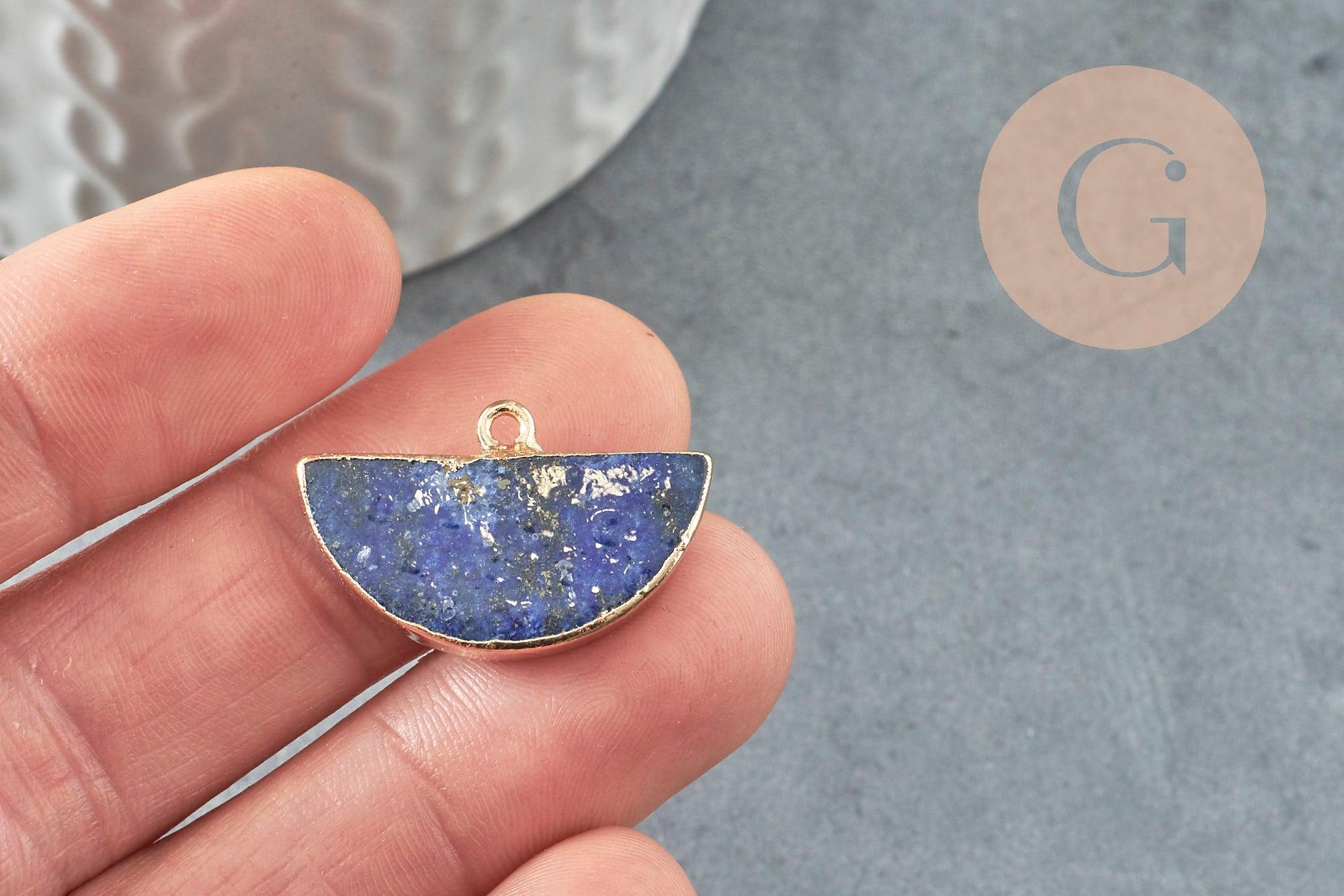 Fall for this half-moon pendant in natural lapis lazuli , to create very trendy bohemian chic jewelry.