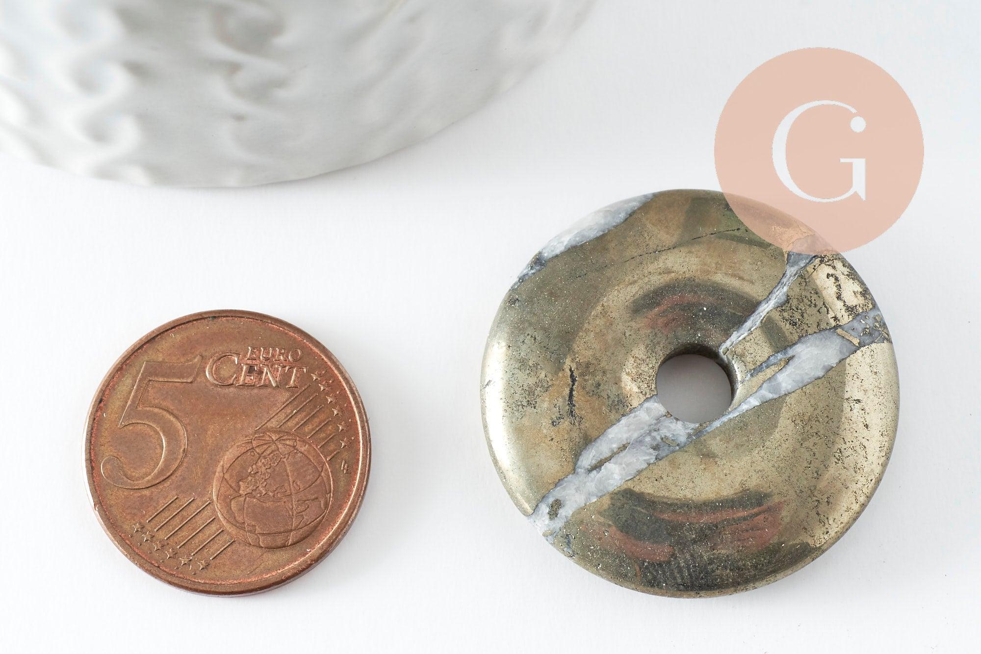 This stunning natural gray pyrite donut pendant will appeal to lovers of raw, chic mineral jewelry. Its polished surface highlights the characteristic metallic reflections of pyrite, sometimes called "fool's gold."