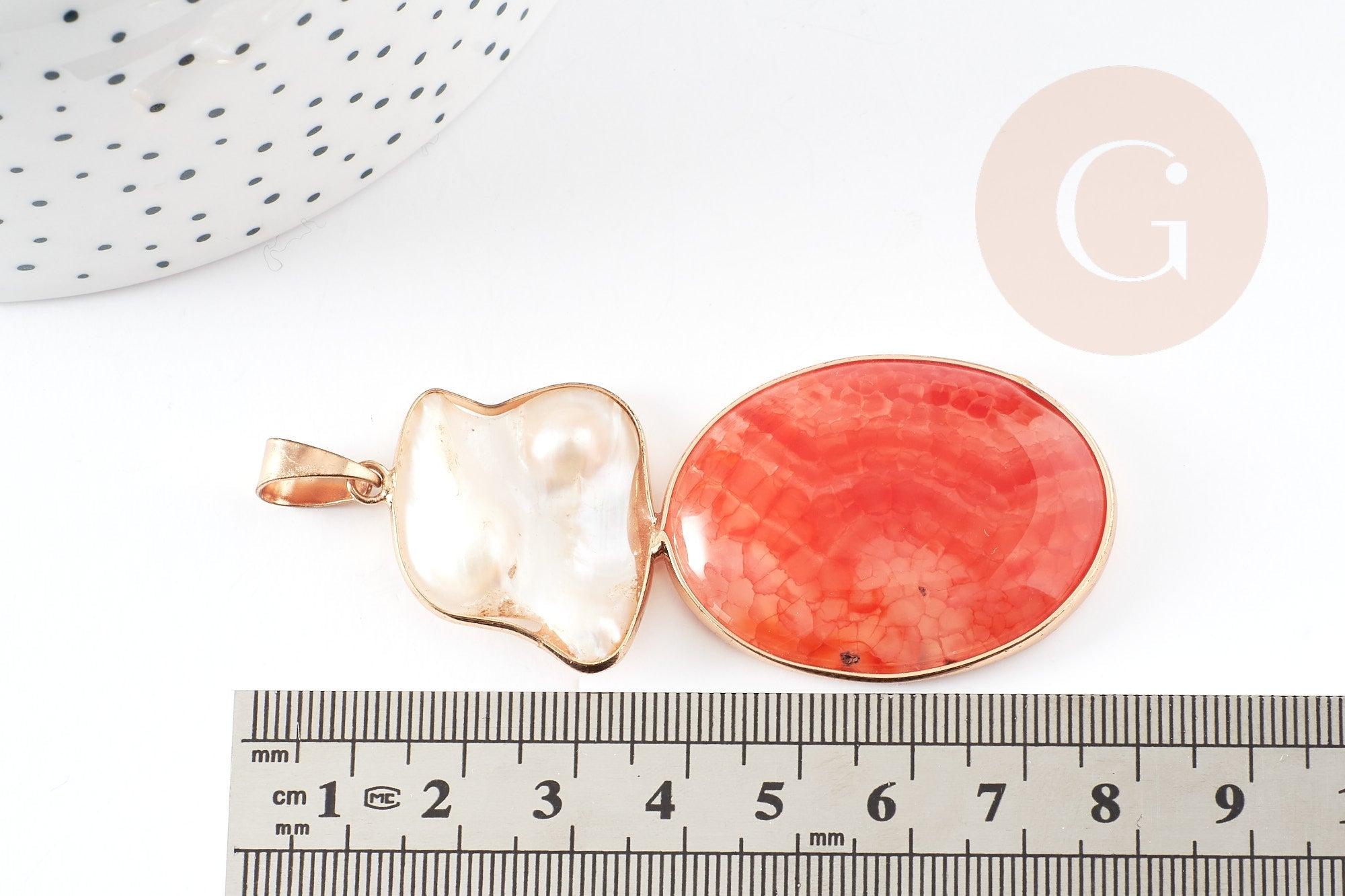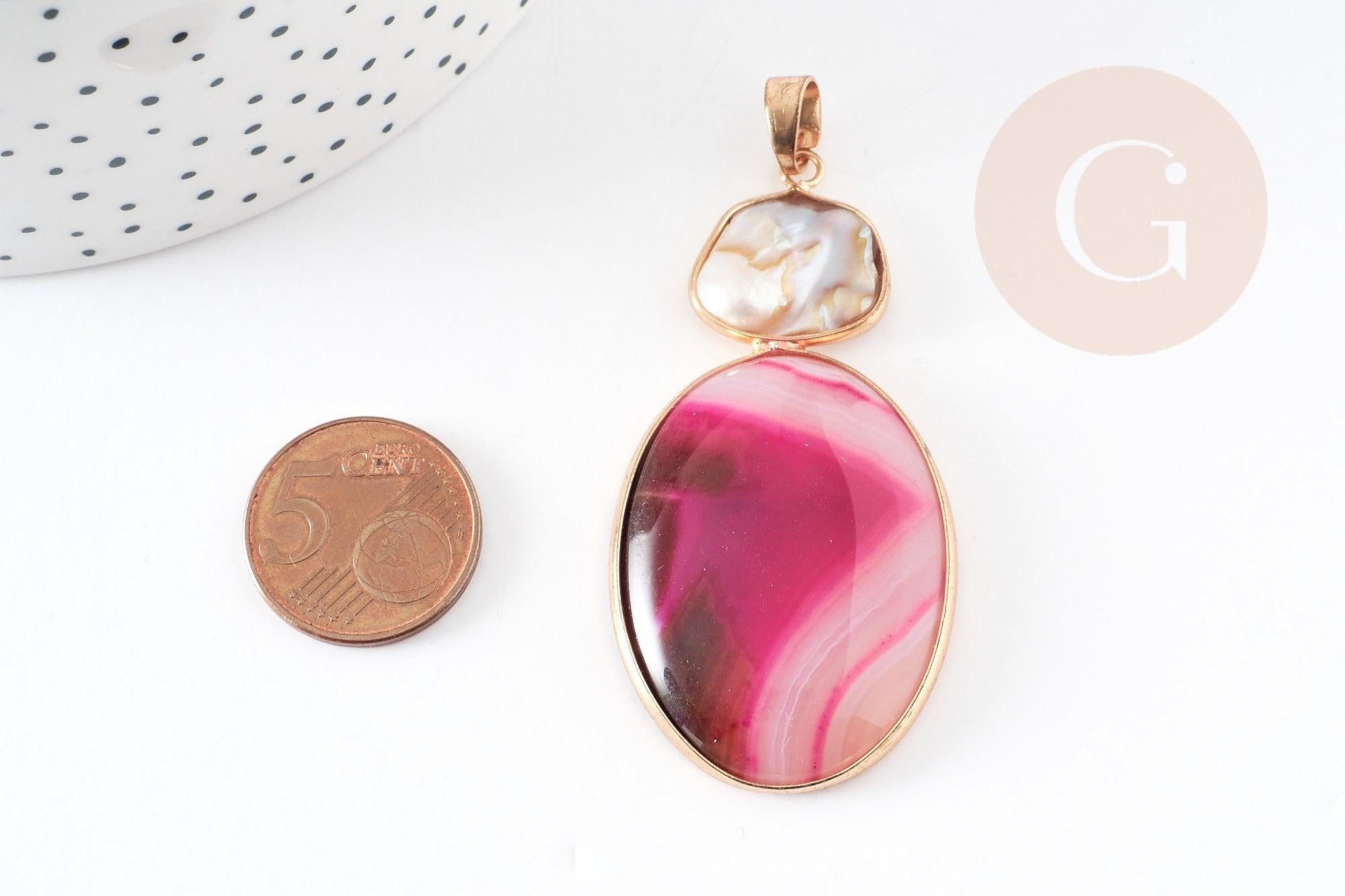 Enhance your creations with this oval pendant in colored natural agate , enhanced with a mother-of-pearl bead for a touch of elegance. Each piece is unique , with variations in color and pattern specific to natural stones.