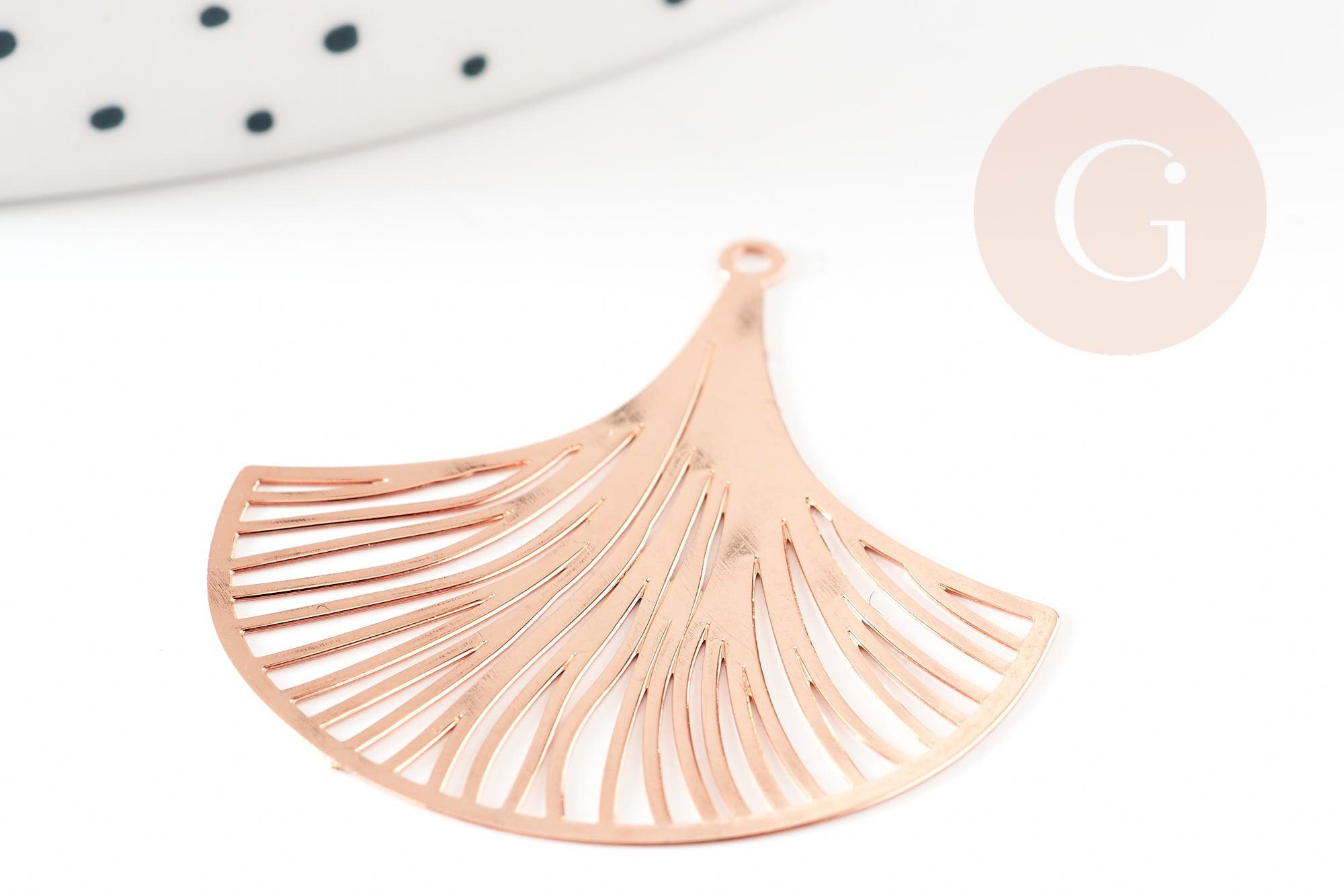 Filigree Gingko Leaf Pendant in Rose Gold Brass, Very Fine and Light Pendant for Jewelry Creation, Set of 2, 30x32mm