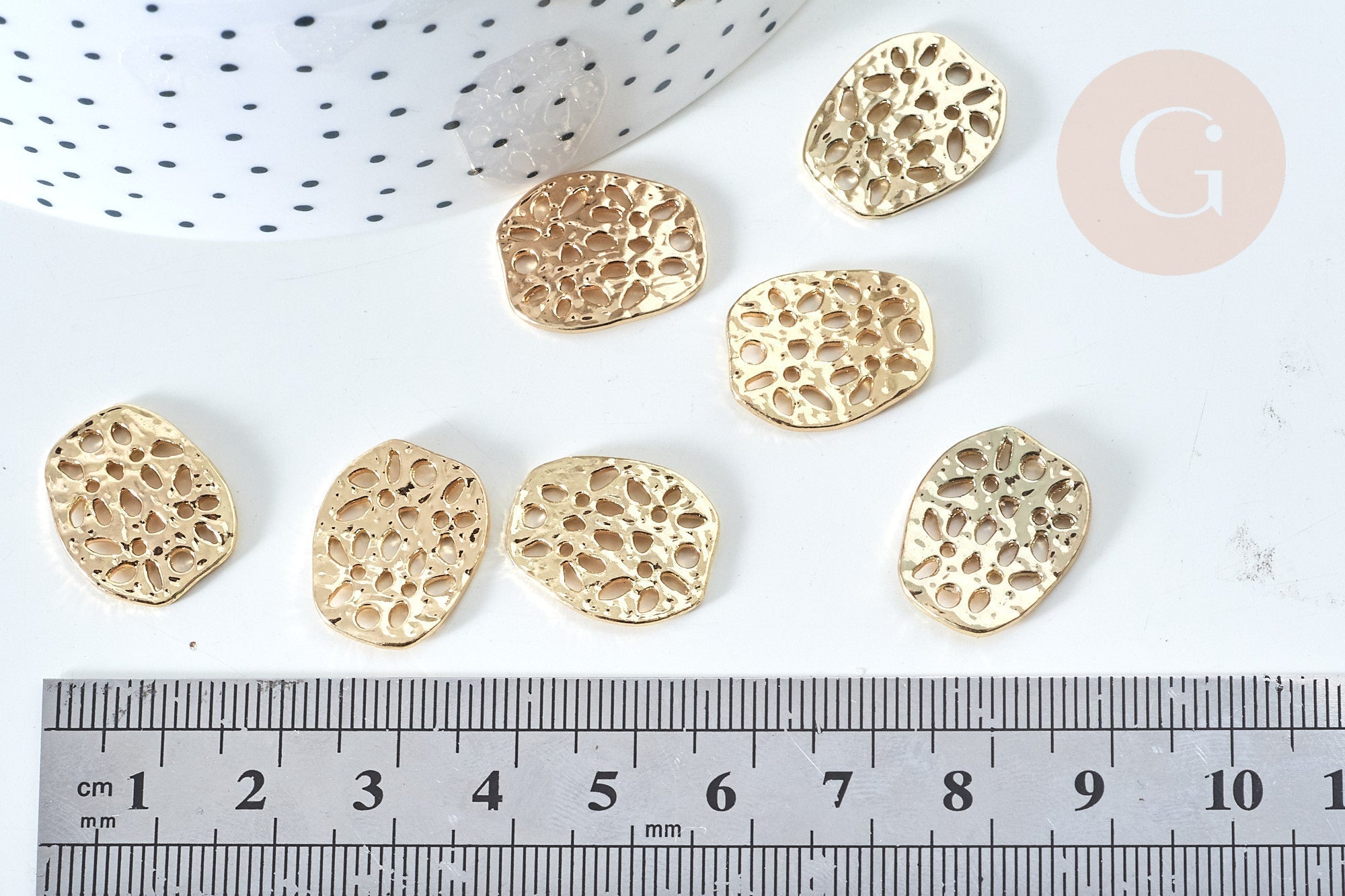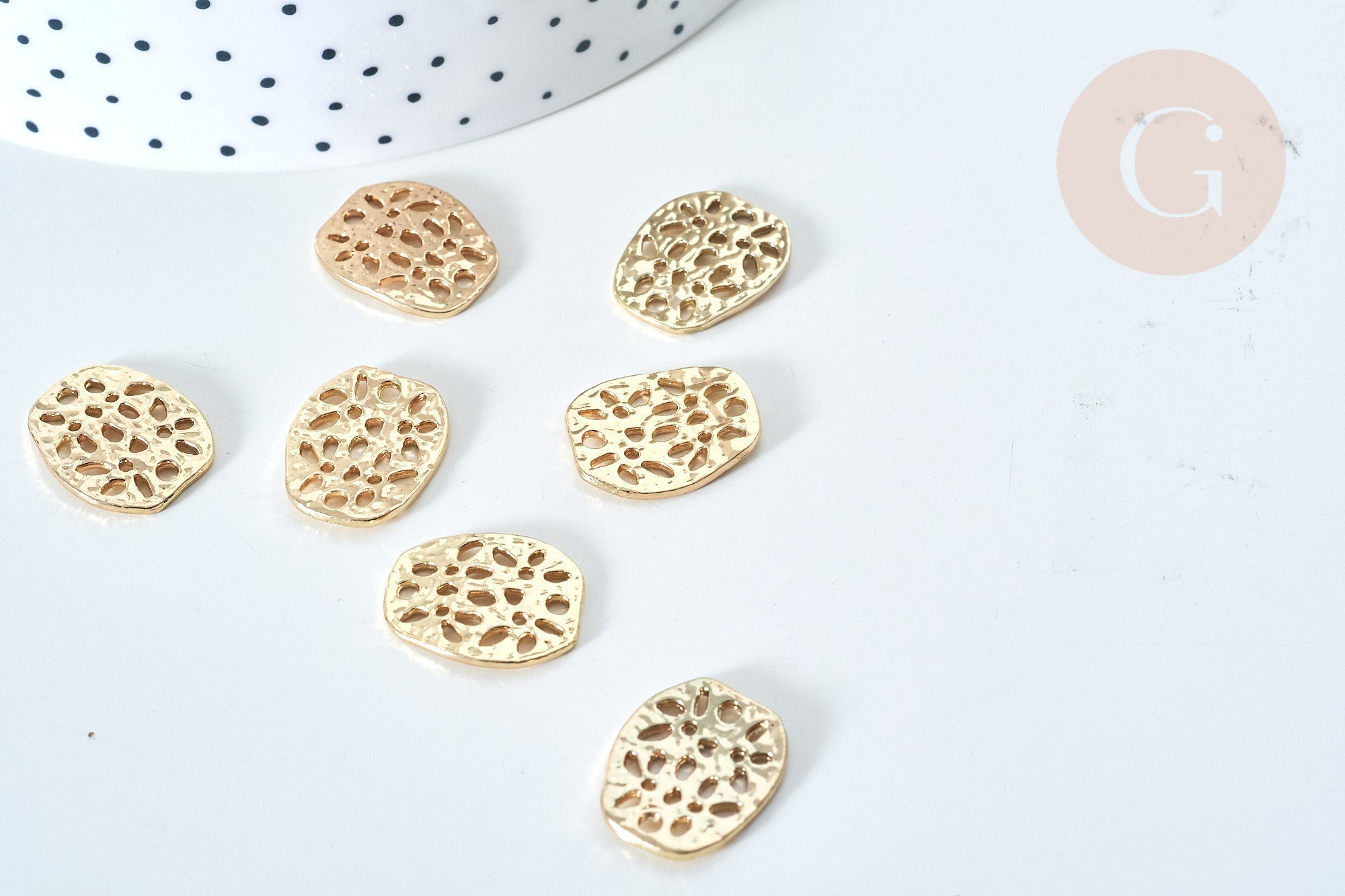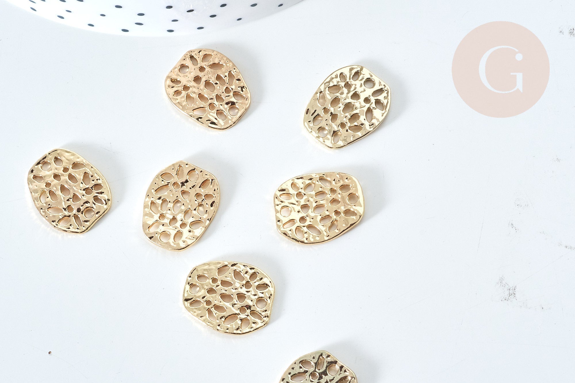 Pendentif estampe filigrane ovale zamac doré clair 18mm, Pendentif fin et léger création bijoux, x 5 G7859