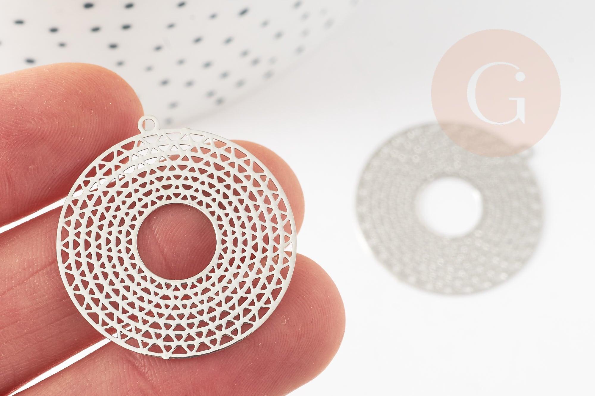 Create multiple jewels with our elegant round filigree print pendant in hollowed-out geometric shape in gold-plated brass of 32.5 mm. This pendant combines all the assets: finesse, lightness and geometric aesthetics to create unique and refined jewels.