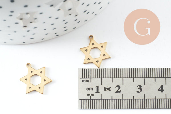 With its superior quality, this stainless steel six-pointed star gold pendant is a perfect choice for jewelry designers looking to create durable and fashionable pieces.