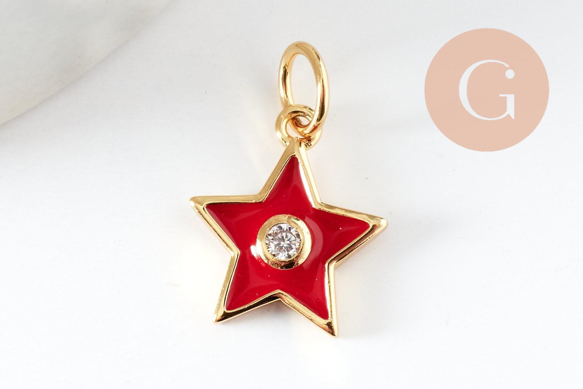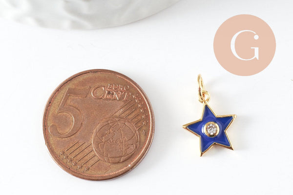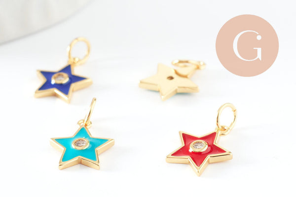 A small star pendant in gold-plated brass and colored enamel with a pretty white zircon crystal in the center, findings to always have in your toolbox to make all the jewelry
