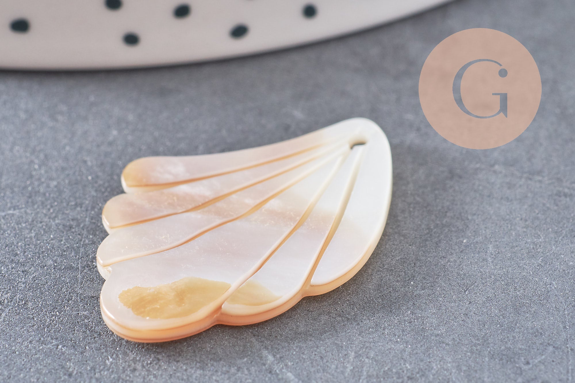 Fall for these leaf pendants in natural pinkish yellow mother-of-pearl. A lovely product for creating fine and elegant earrings and necklaces.