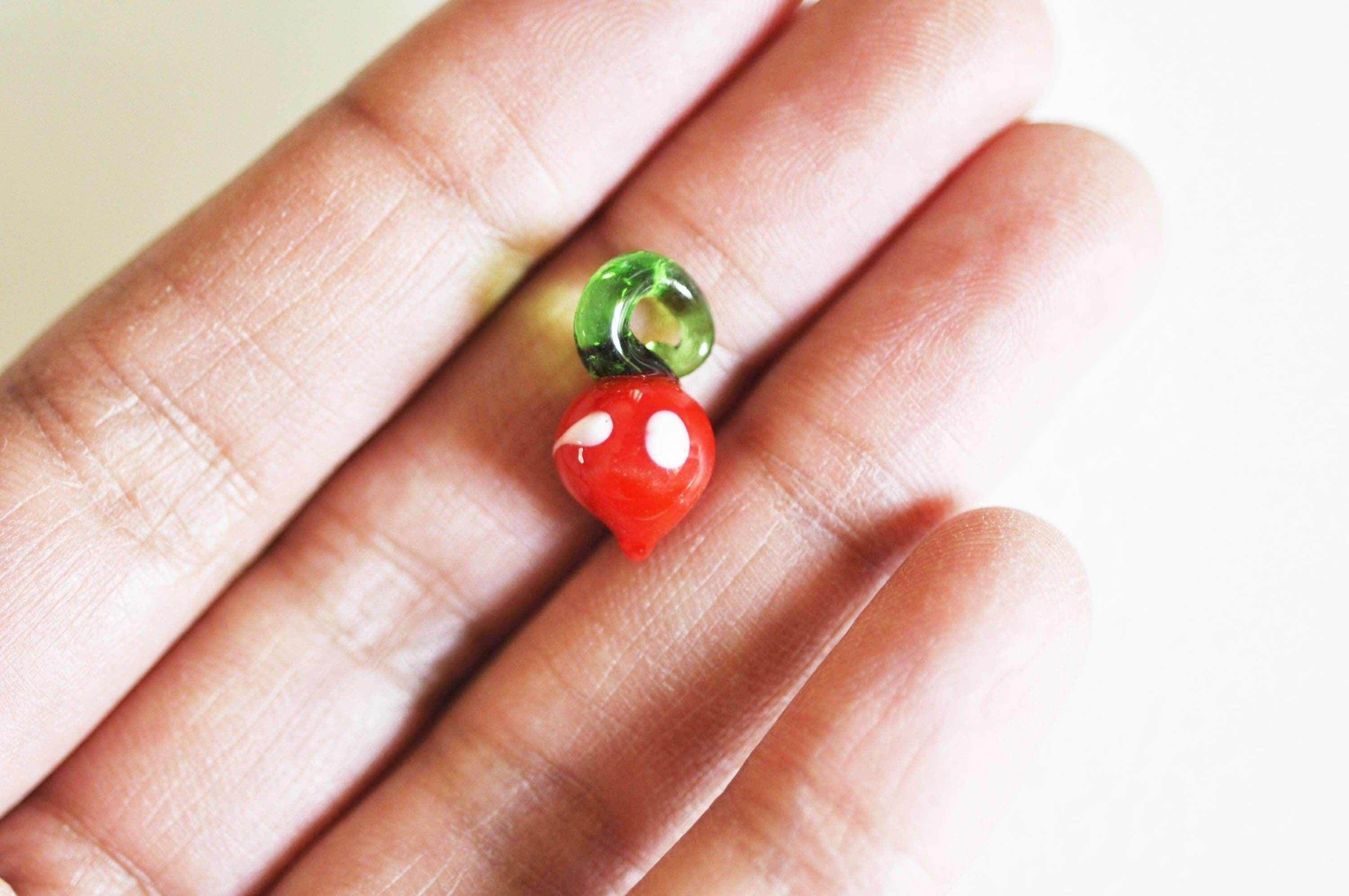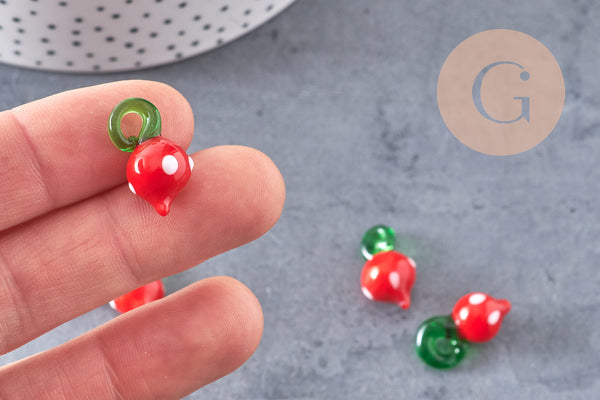Add a fruity and charming touch to your creations with this handcrafted Czech glass strawberry pendant . Made by hand, it captivates with its meticulous details and shades of deep red and translucent green , evoking freshness and sweetness.