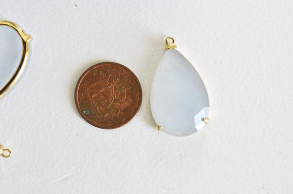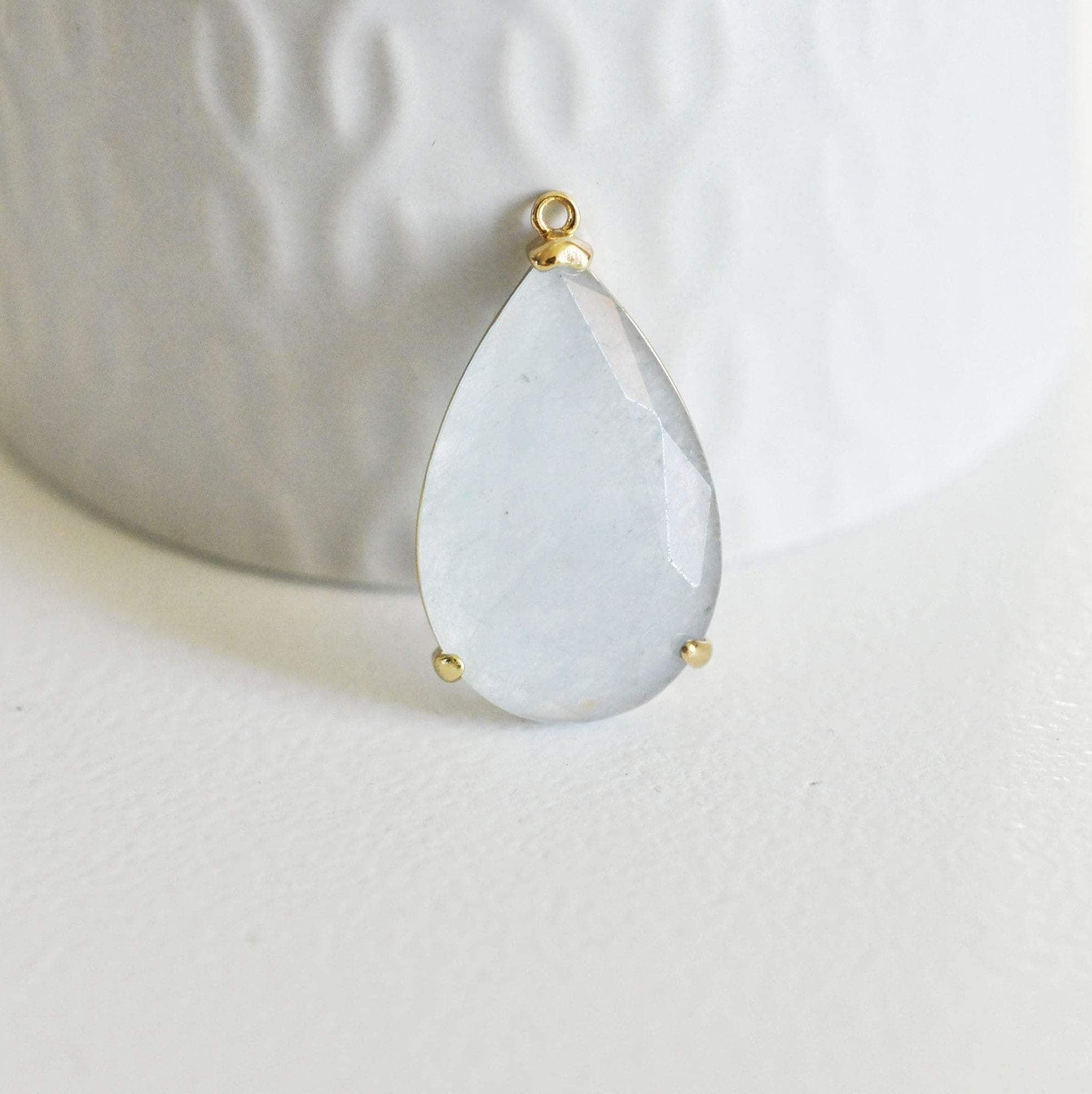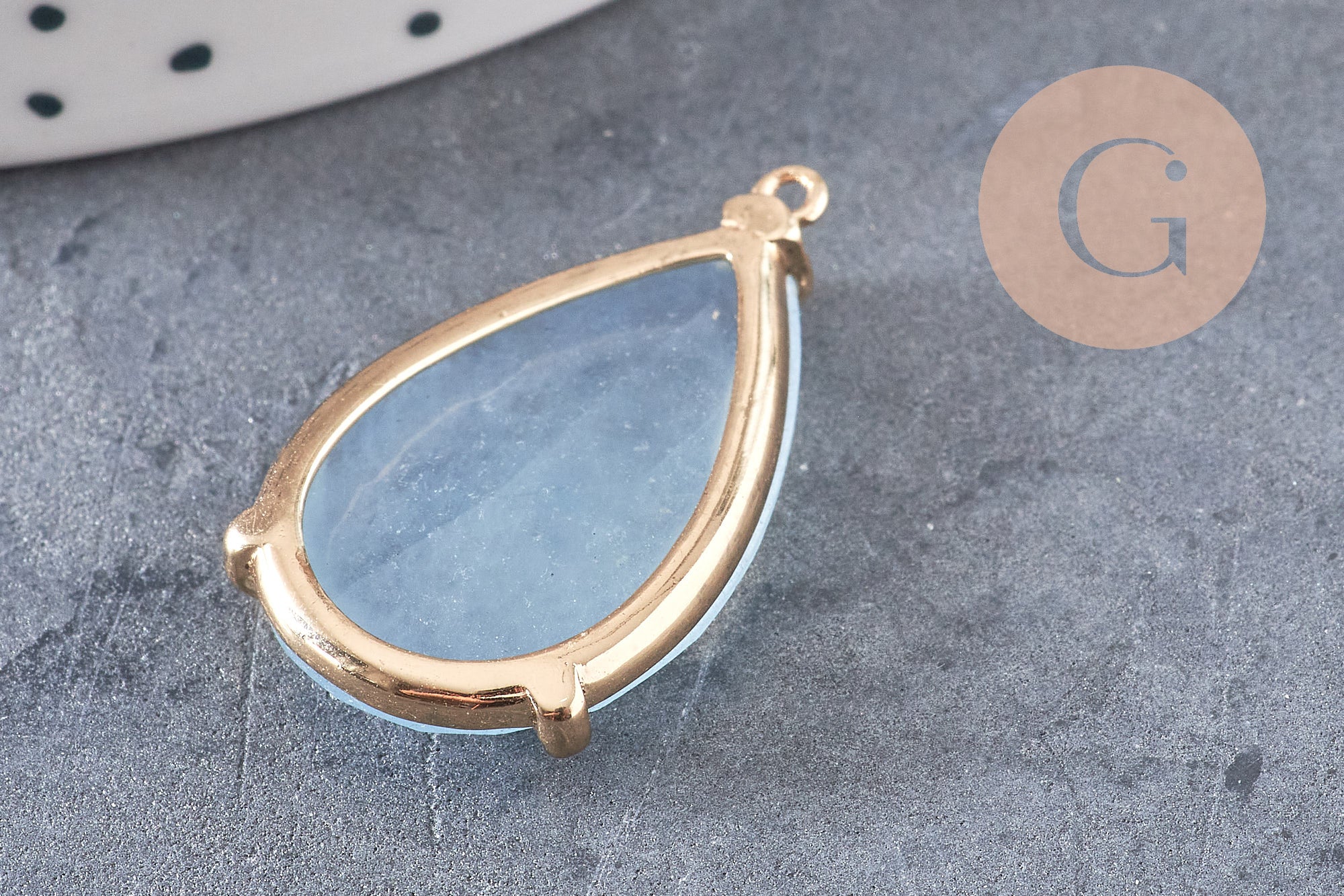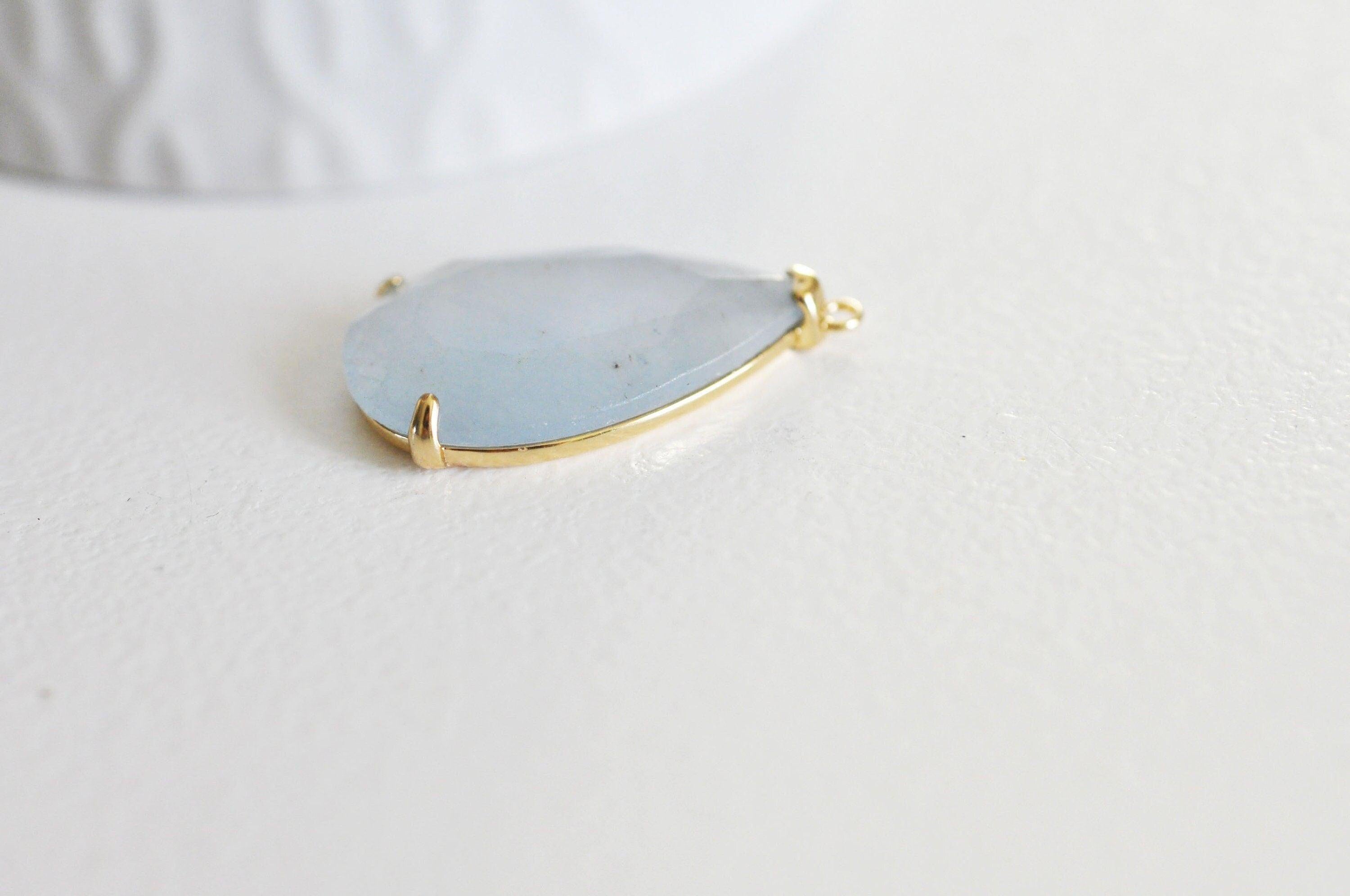 With this pendant in natural light blue agate and its support in golden brass , you can create many DIY costume jewelry .