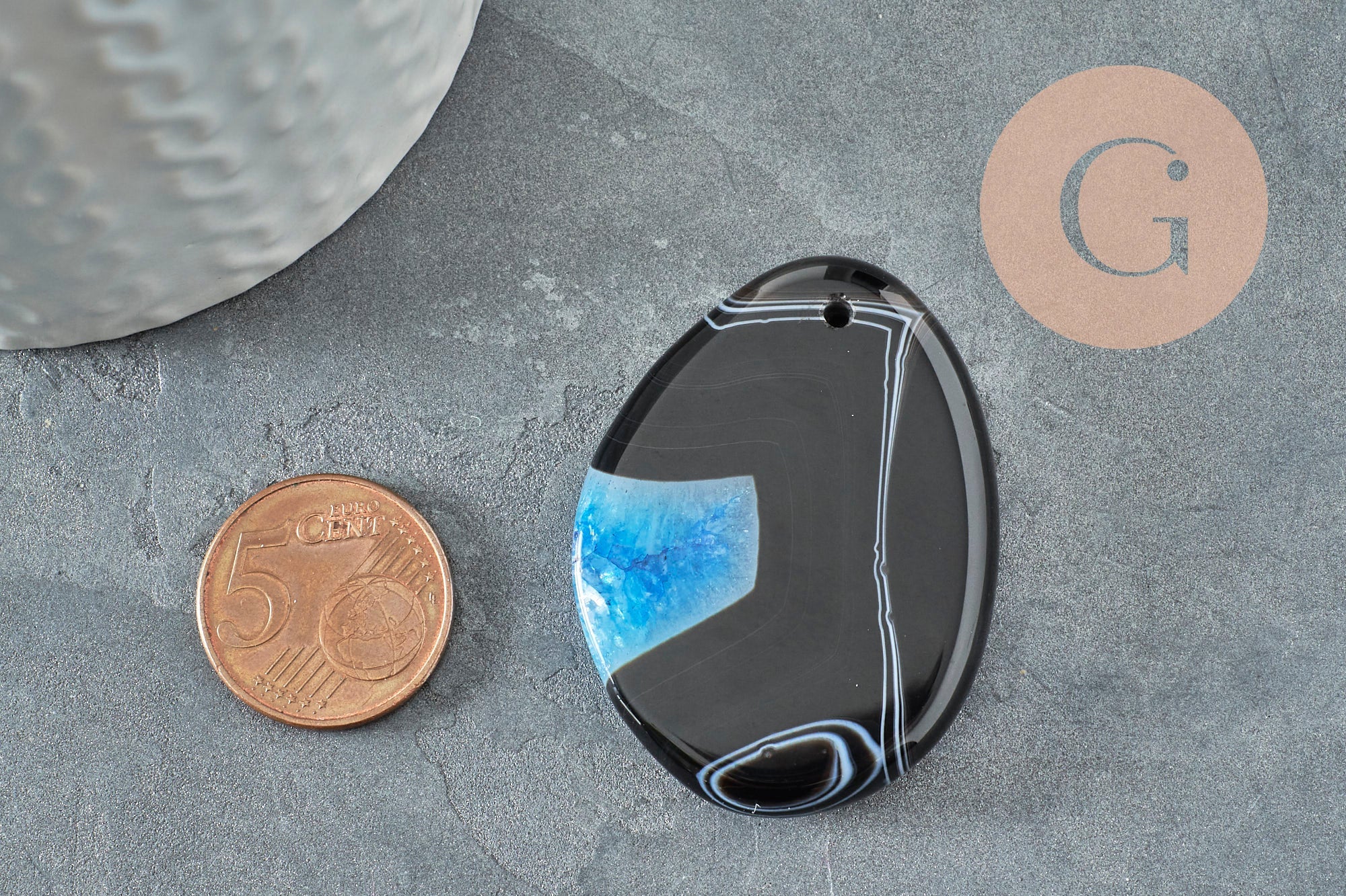 Fall for this drop pendant in natural black and colored striped agate, to make very trendy bohemian chic jewelry.