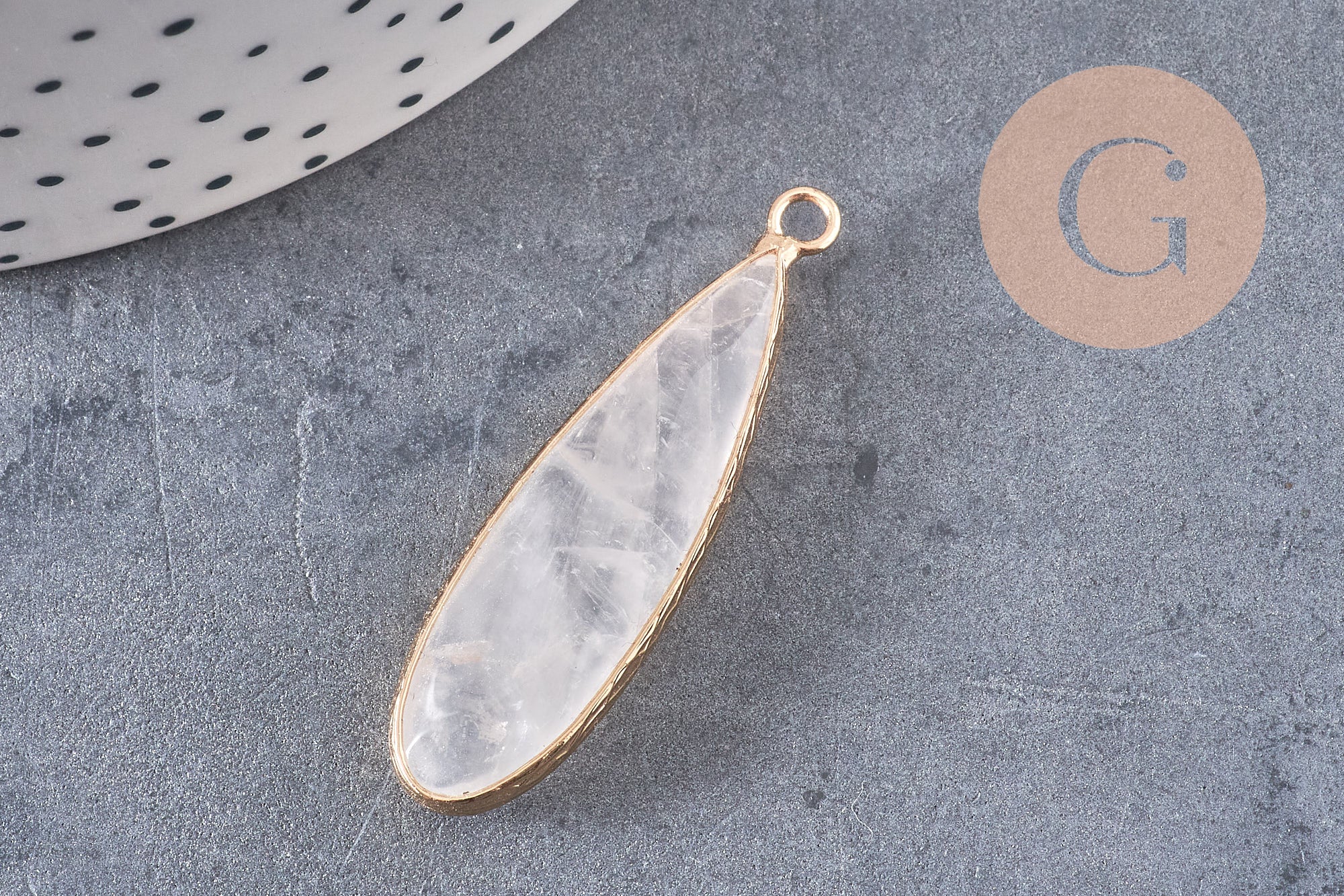 Natural rock crystal drop pendant in gold-plated brass 40mm, x1 (G2555)
