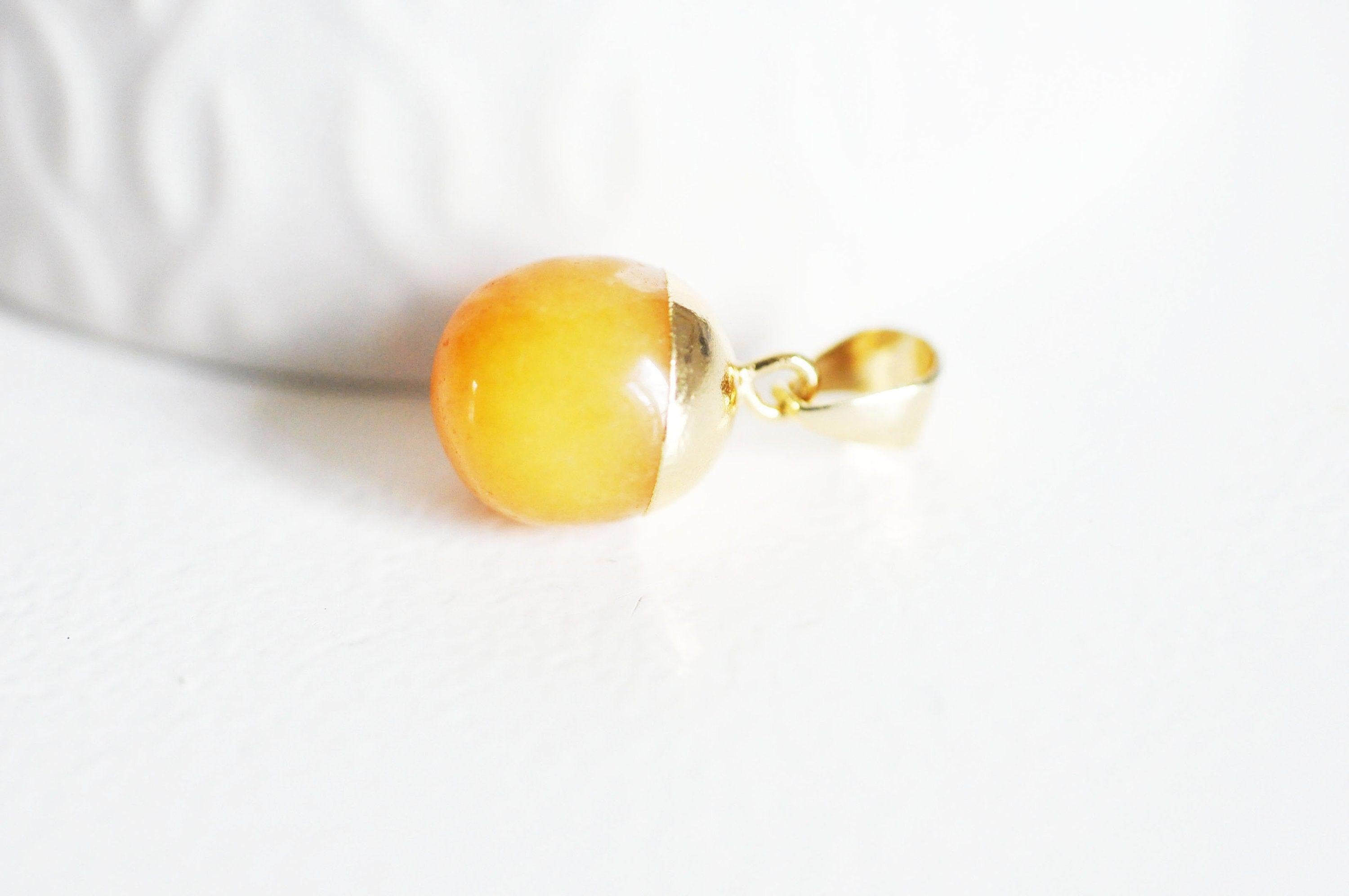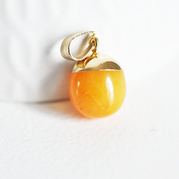 Golden orange jade drop pendant, craft supplies, stone pendant, natural jade, tinted red jade, 17-19mm
