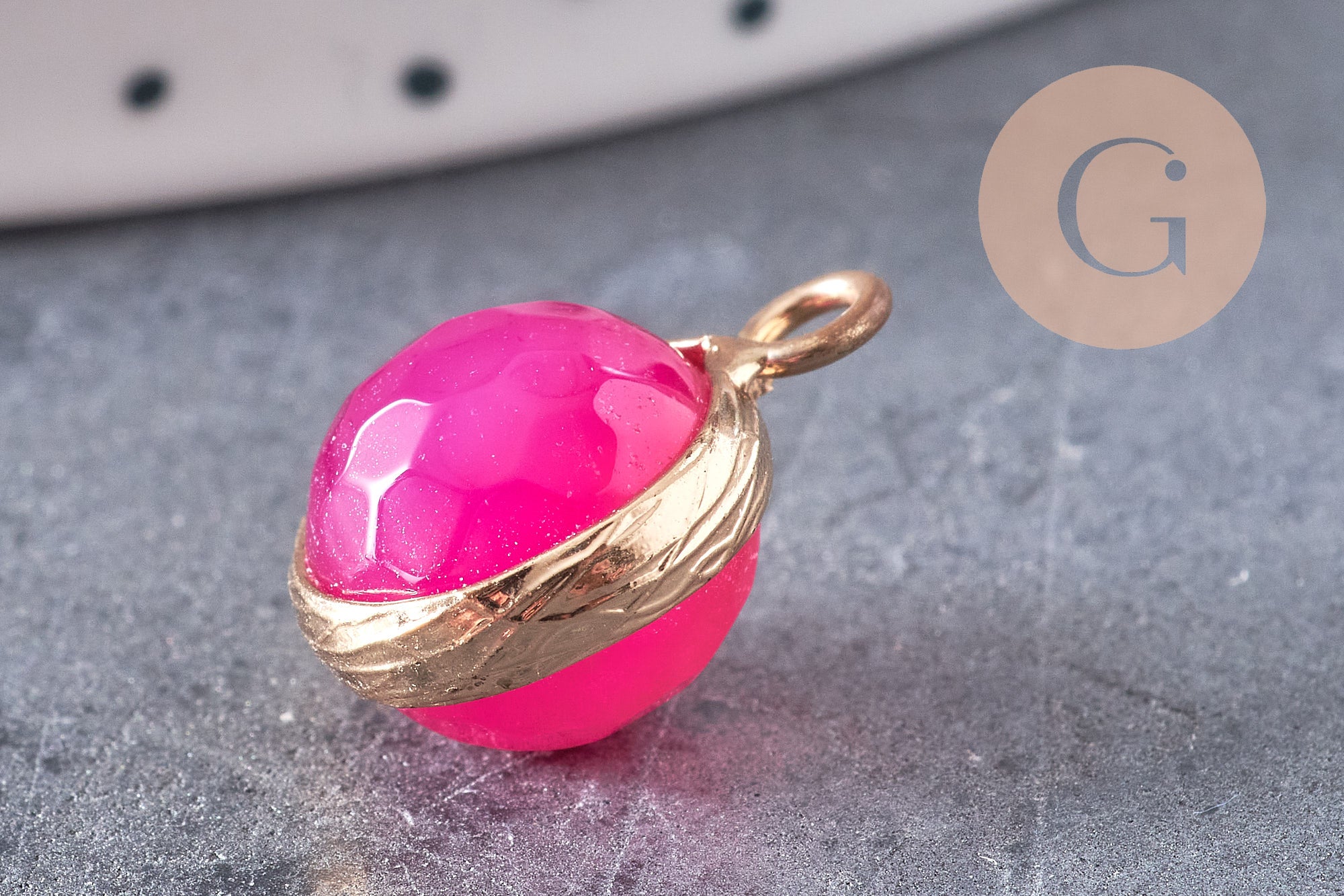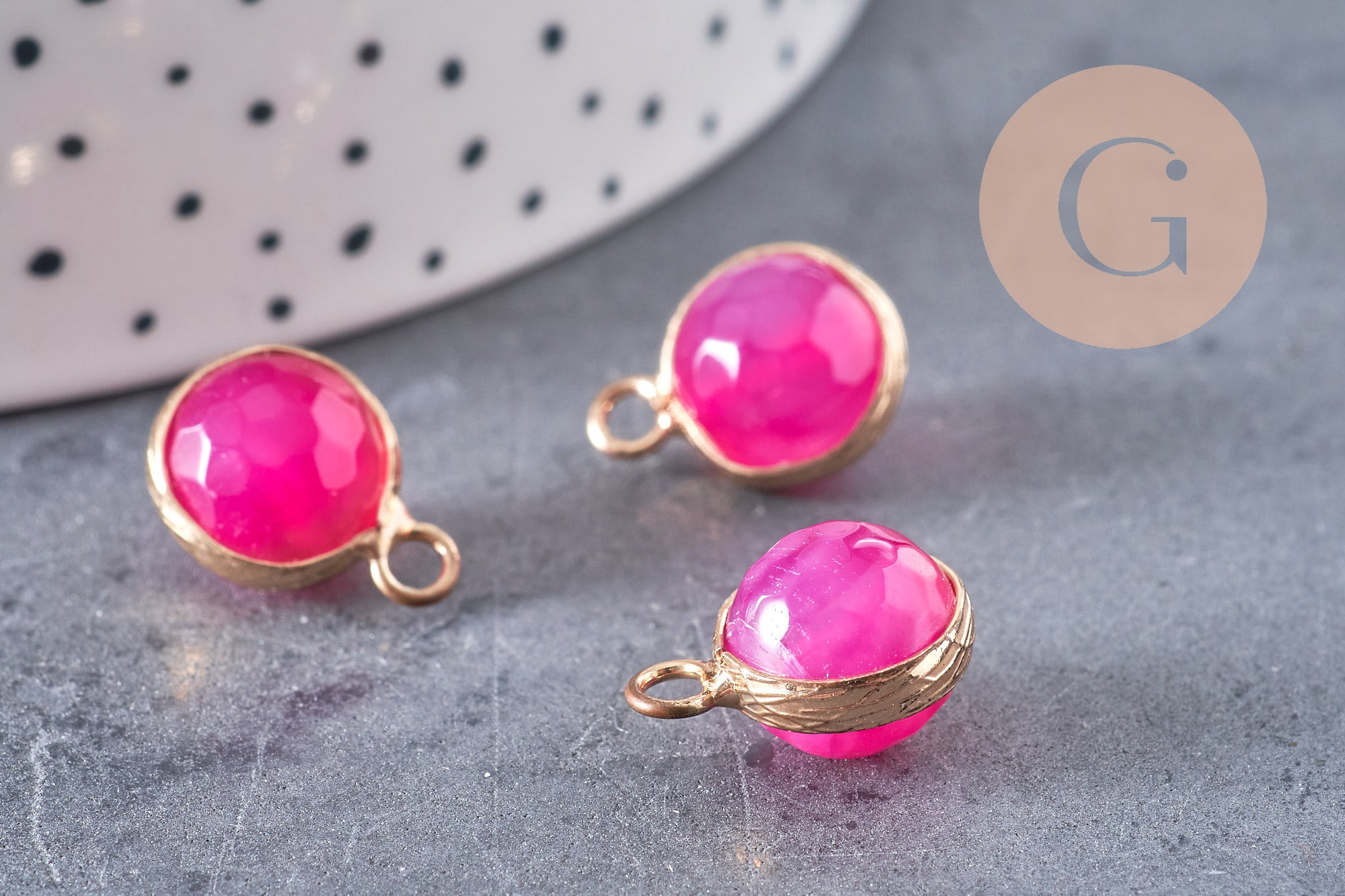 Fall for this very discreet little pendant in natural jade tinted in fuchsia pink with its golden iron support.