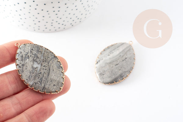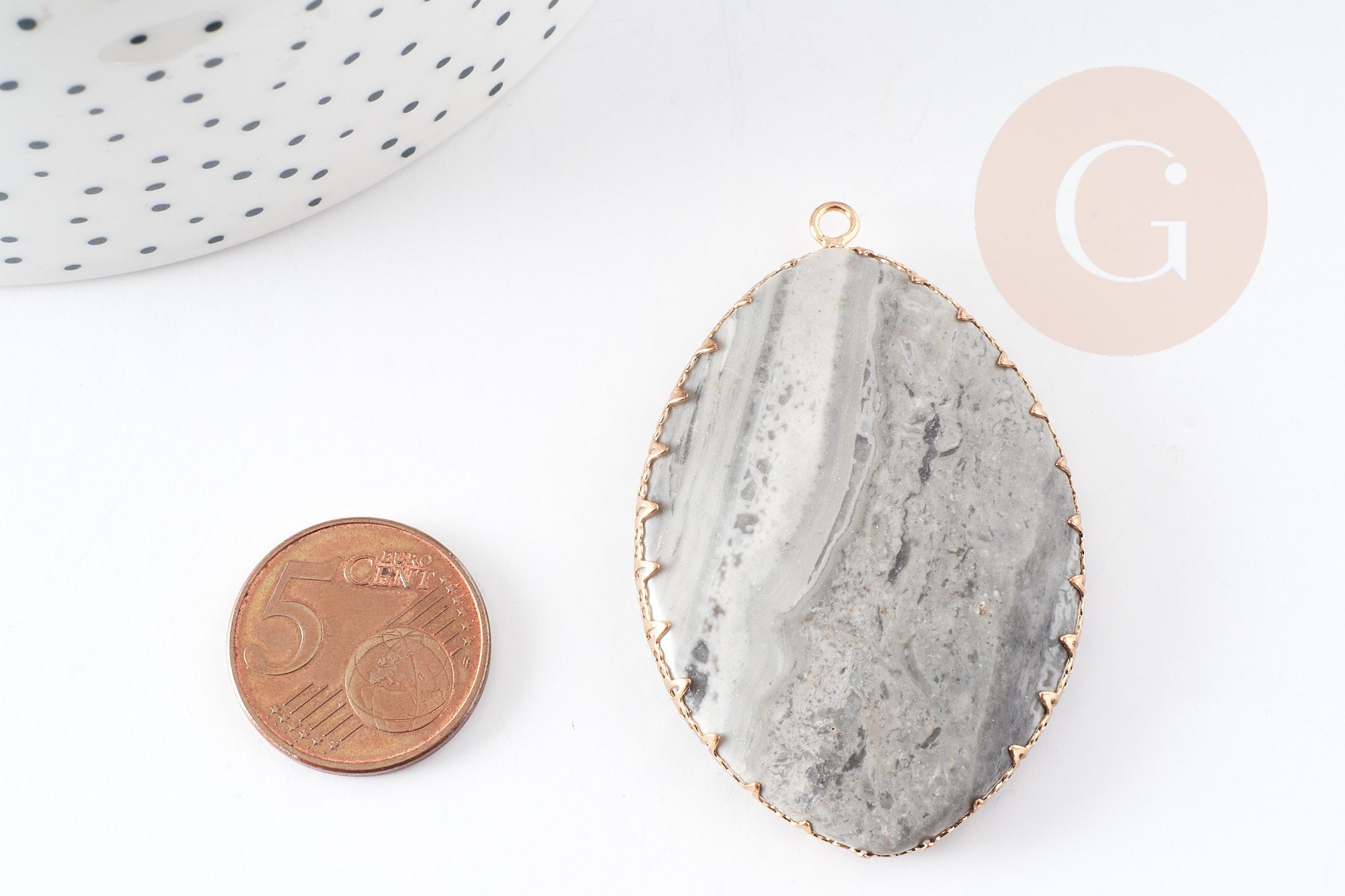Fall for this large natural zebra jasper pendant with its golden iron support.