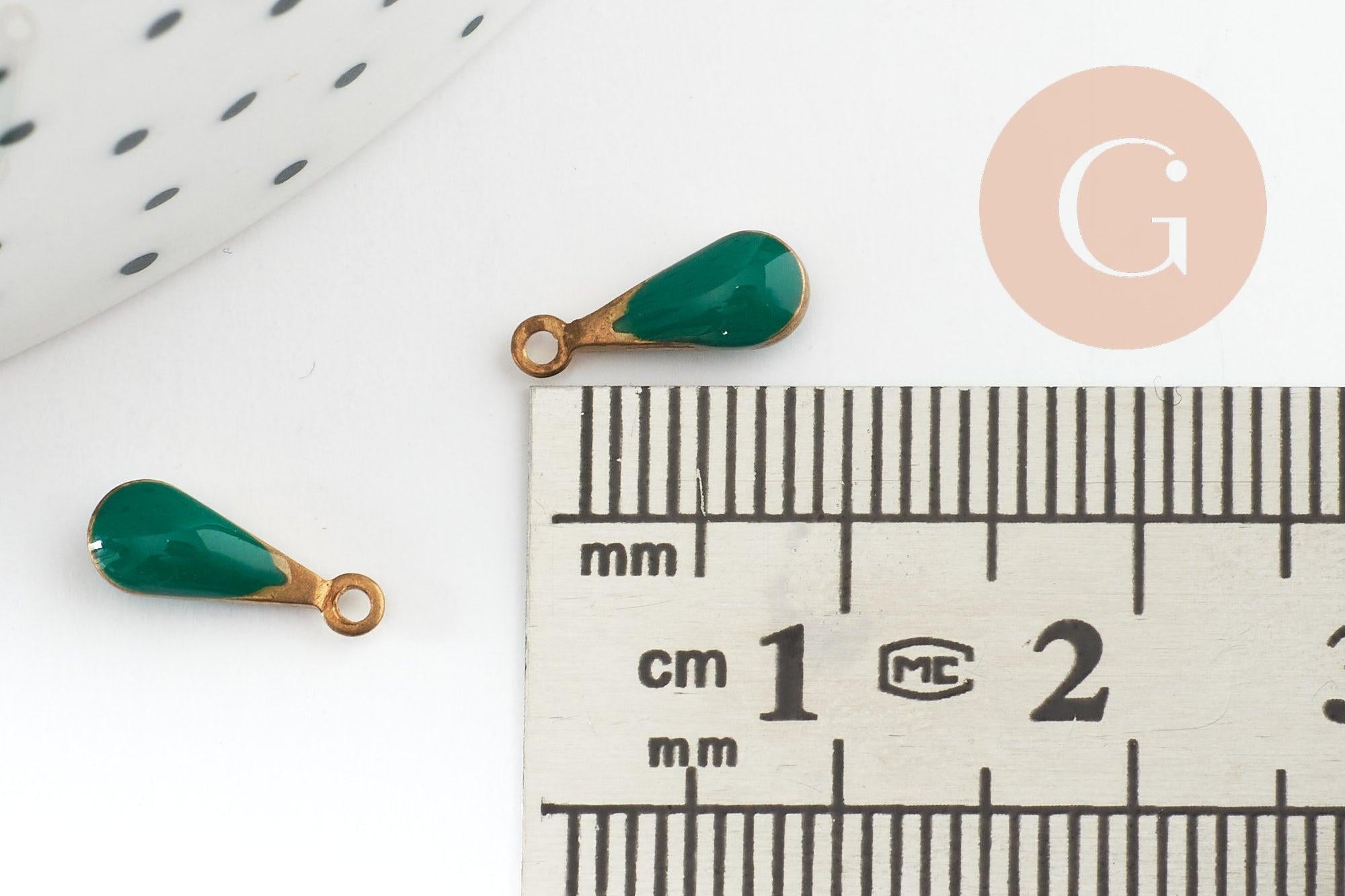 Raw brass drop pendant with green enamel, creative supplies, golden brass, drop pendant, jewelry creation, 11mm, set of 10