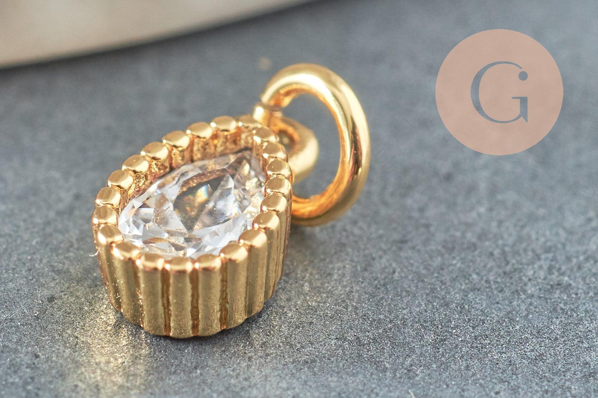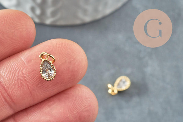 Pendentif goutte laiton doré zircon blanc 10mm,pendentif doré cristal, création bijoux x1 (G9673)