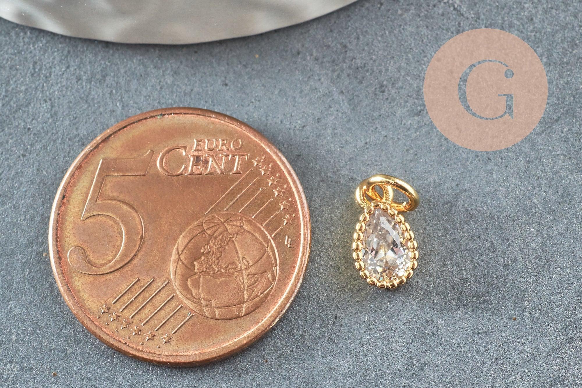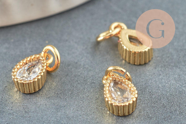 Gold-plated brass drop pendant with white zircon 10mm, gold-plated crystal pendant, jewelry creation x1 G9673