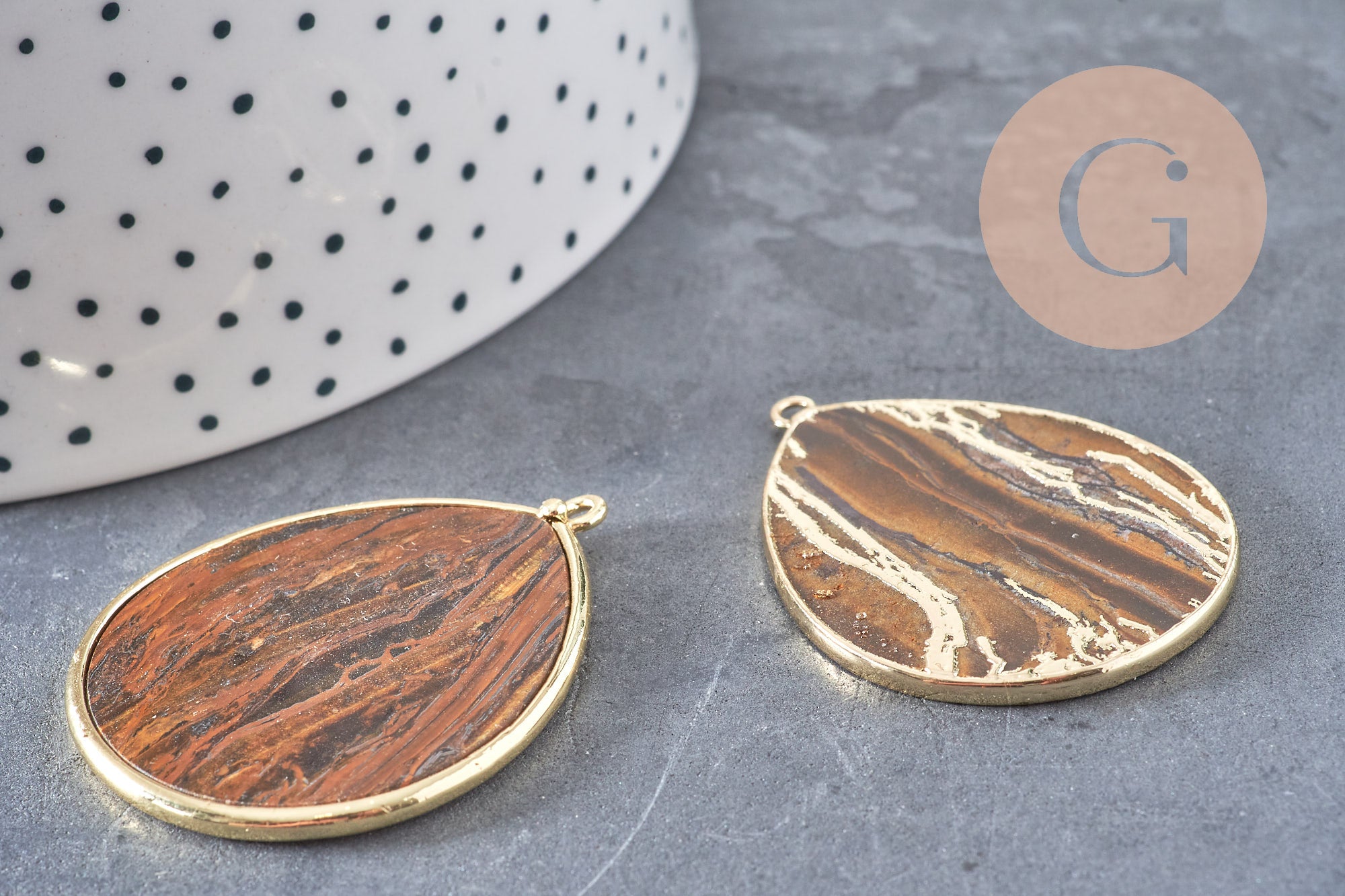 Enhance your creations with this 41 mm natural tiger's eye drop pendant . Renowned for its protective and energizing properties, the tiger's eye stone reveals magnificent golden and brown reflections that capture the light with intensity.