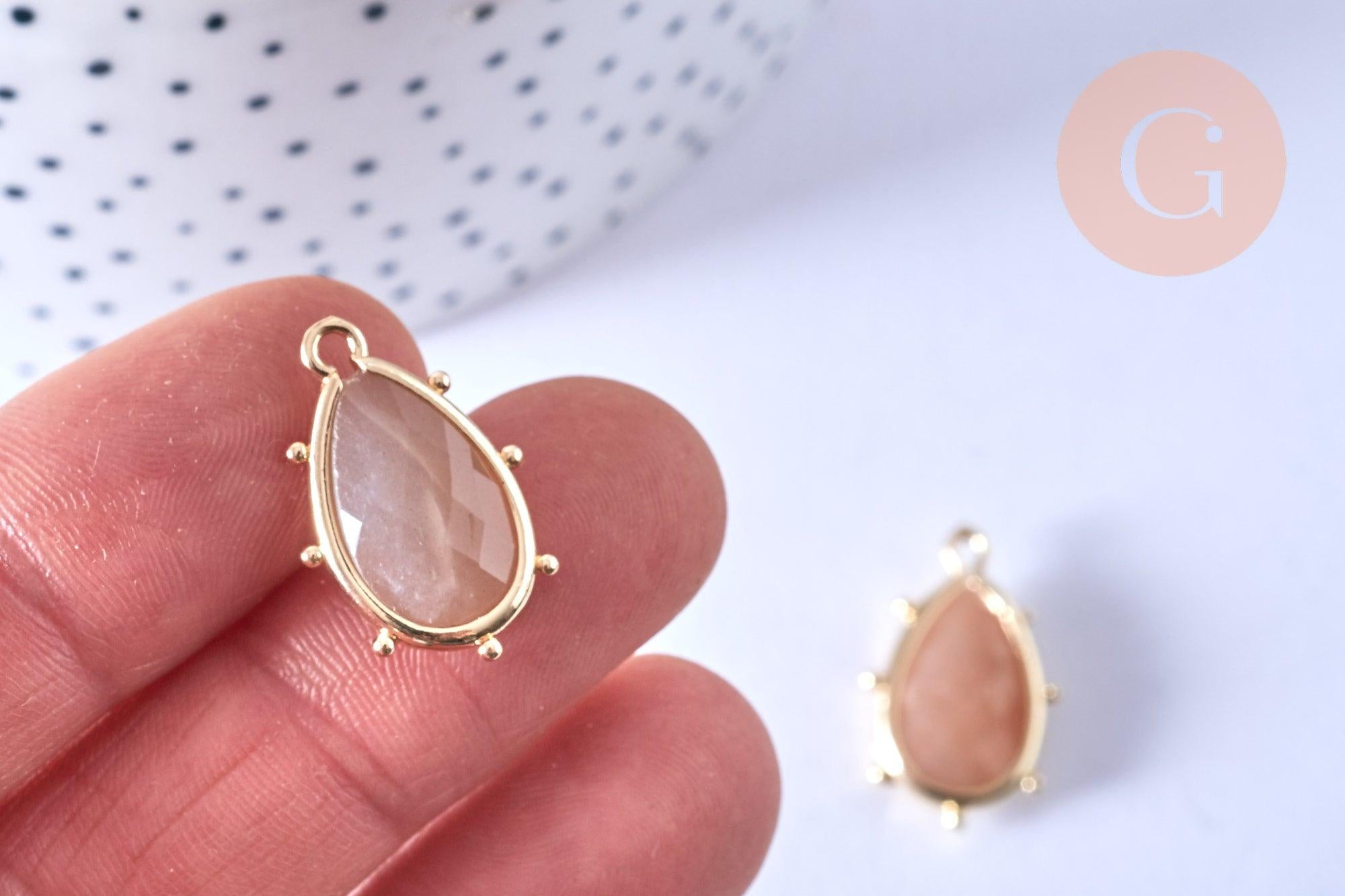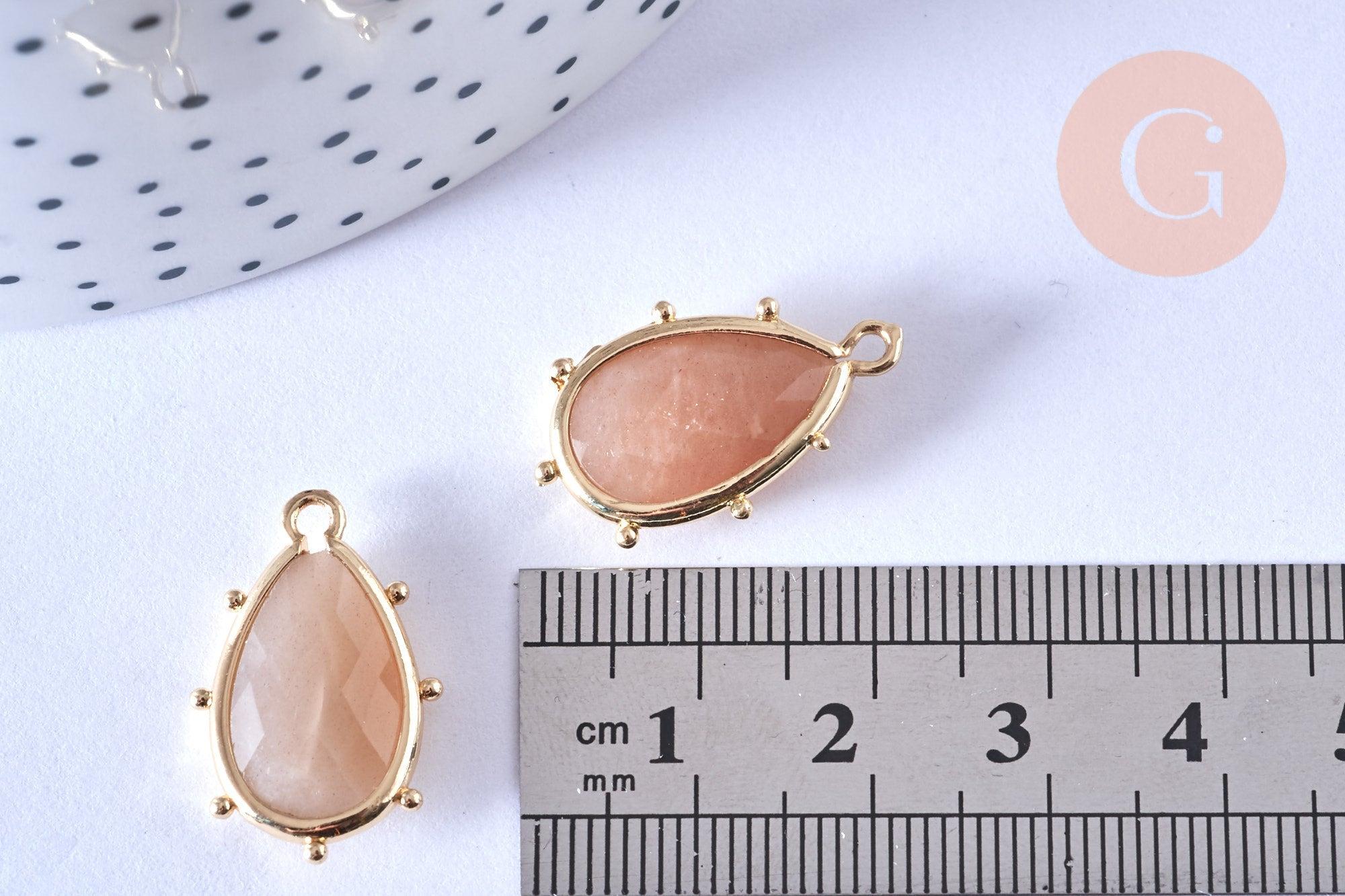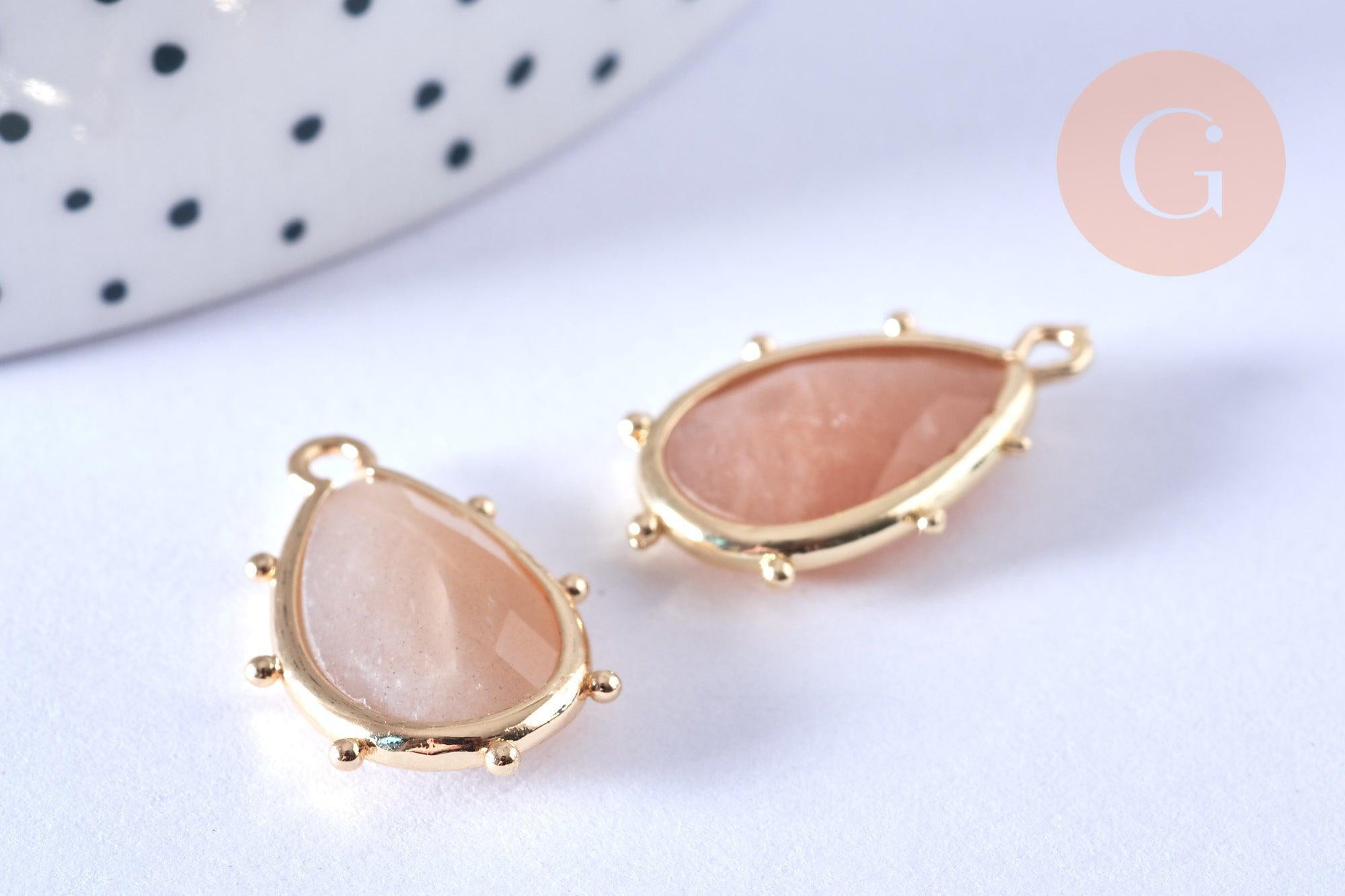 Fall for this very discreet little pendant in natural sun stone with magnificent reflections, on its golden brass support.