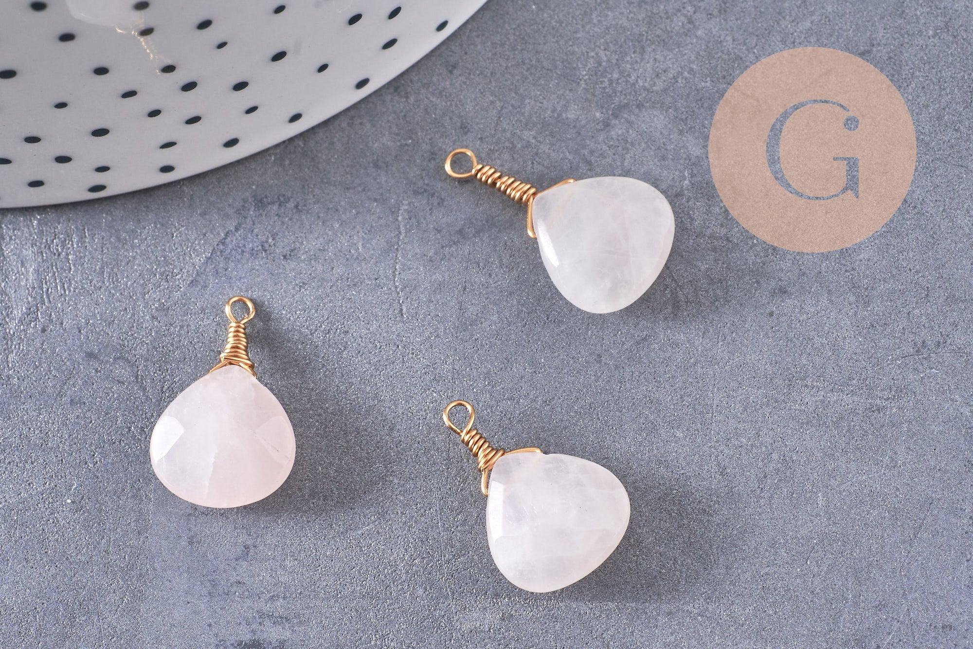 Fall for this natural faceted rose quartz pendant with its golden copper support.