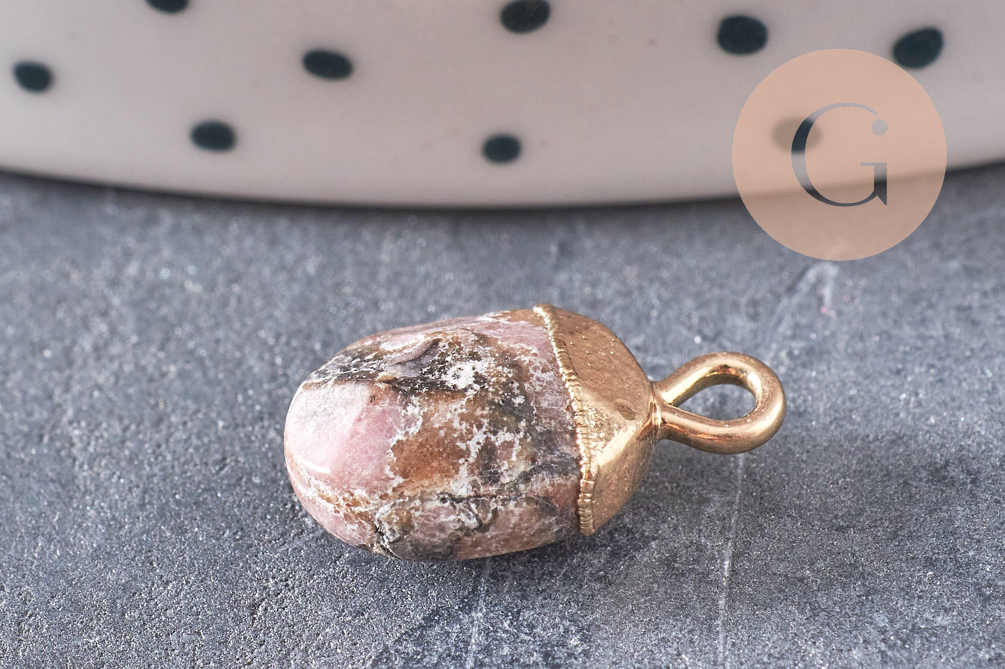 Fall for this very discreet little pendant in natural rhodonite with its golden iron support.