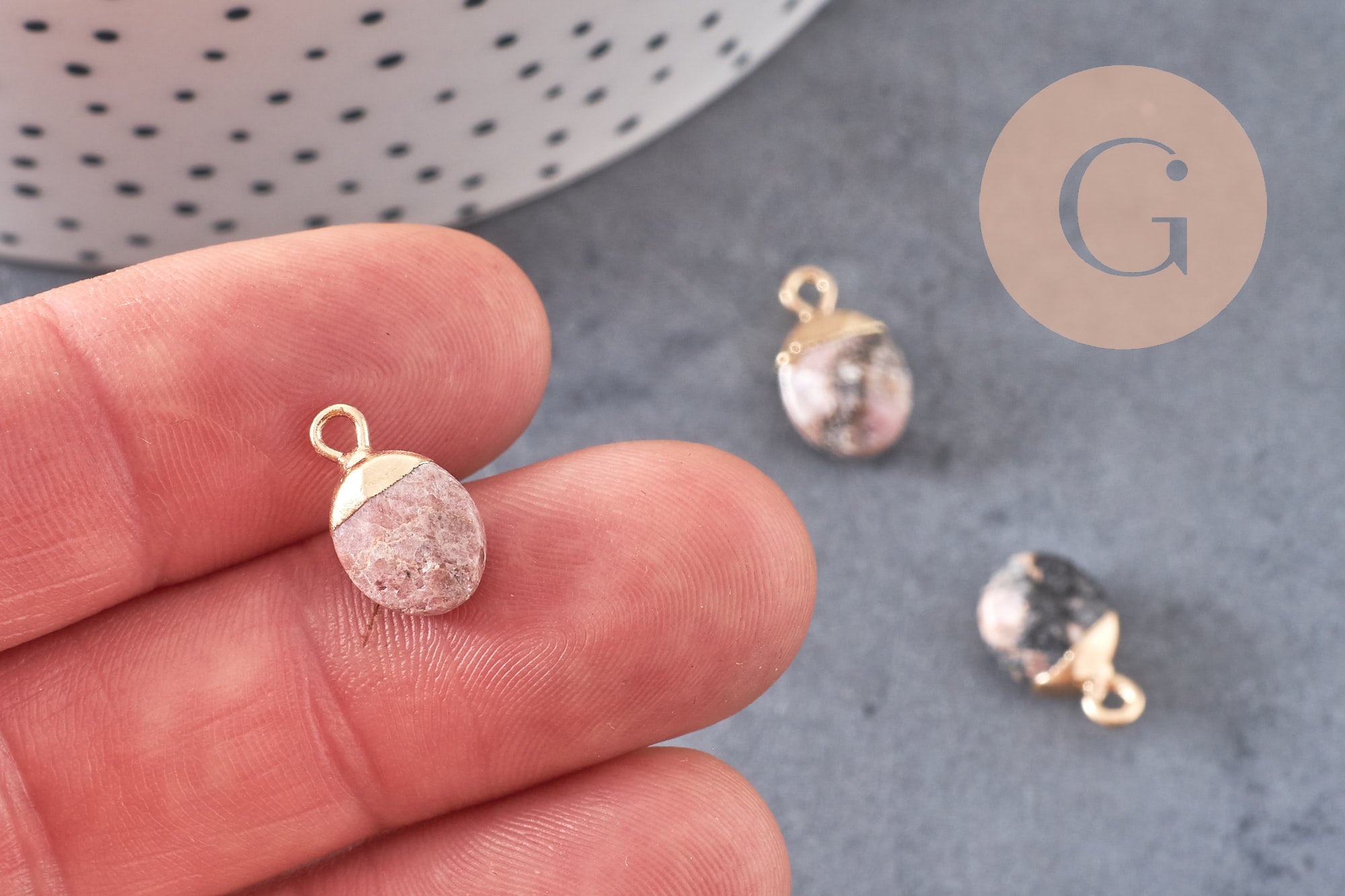 Pendentif goutte rhodonite,pendentif bijoux,pendentif pierre,quartz rose naturel,pendentif rhonodite,14mm, x2 (G10276)