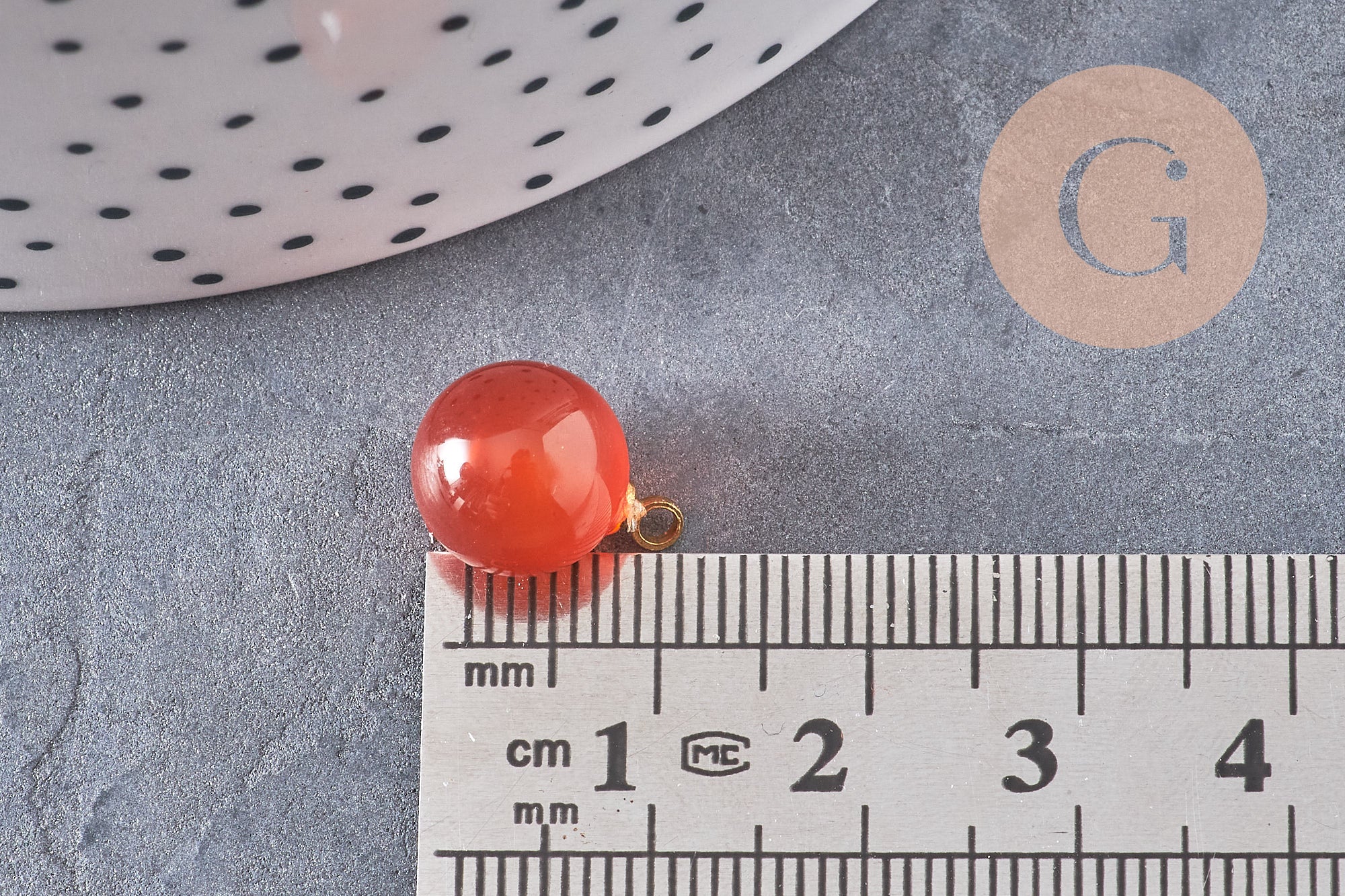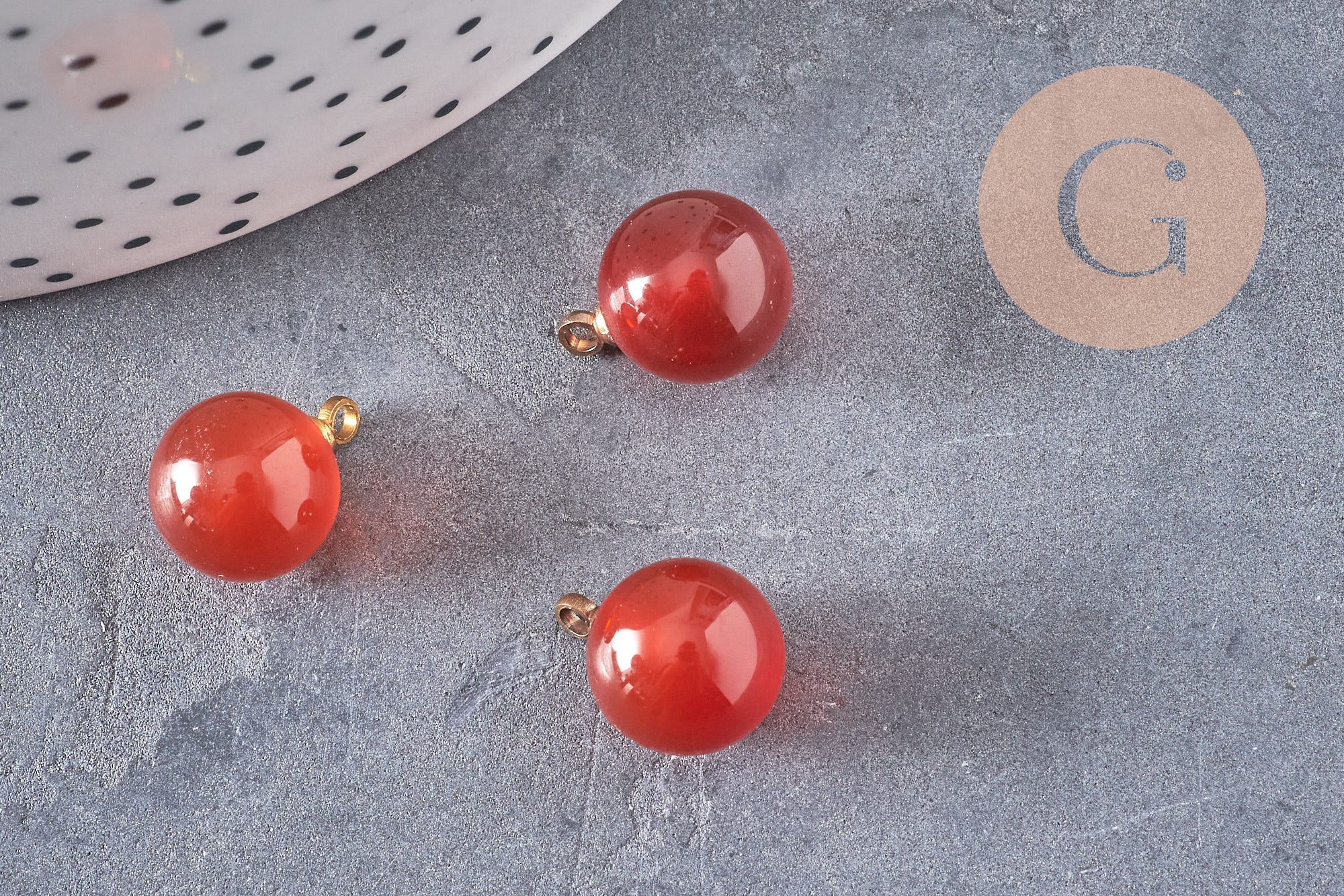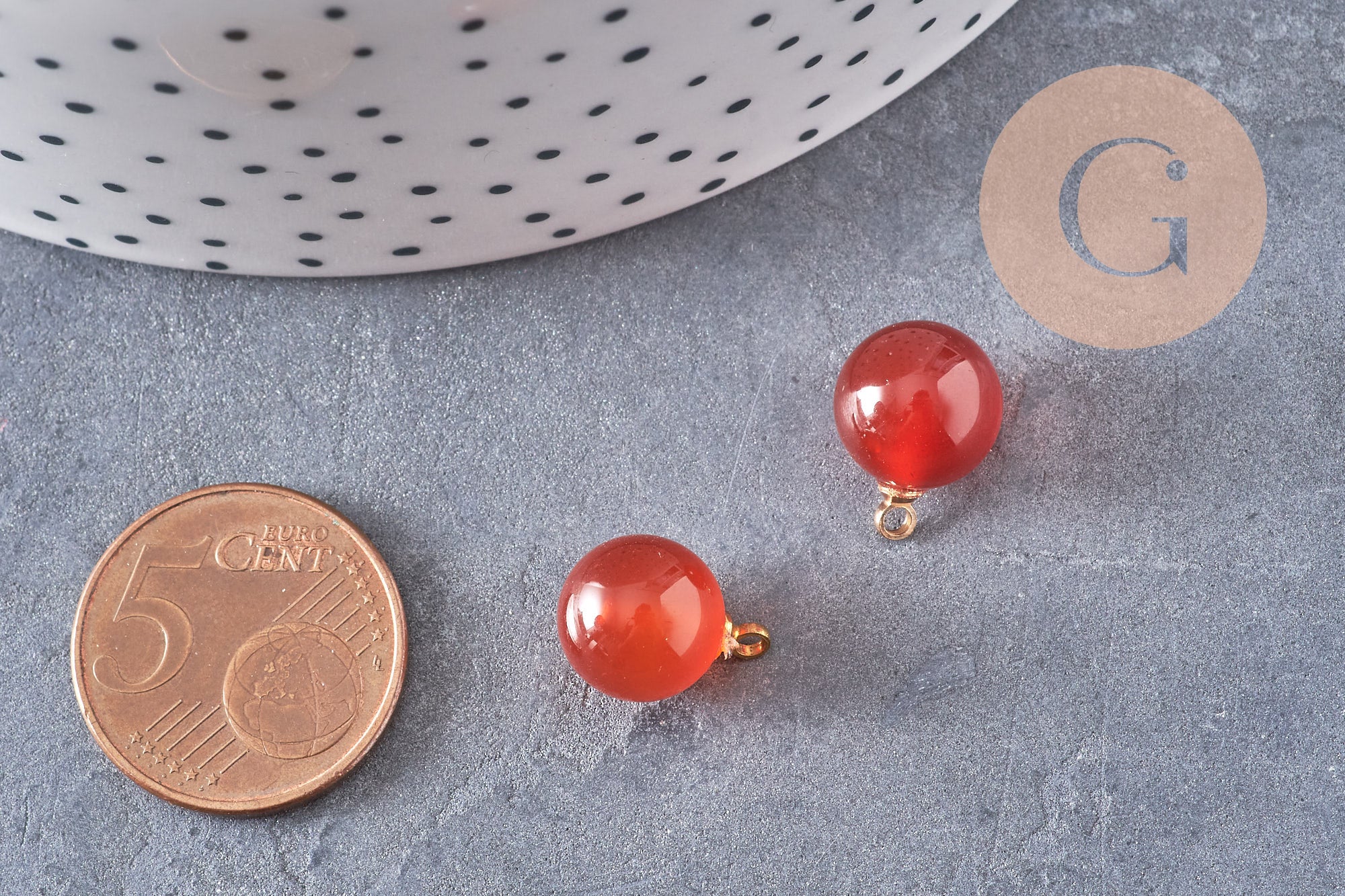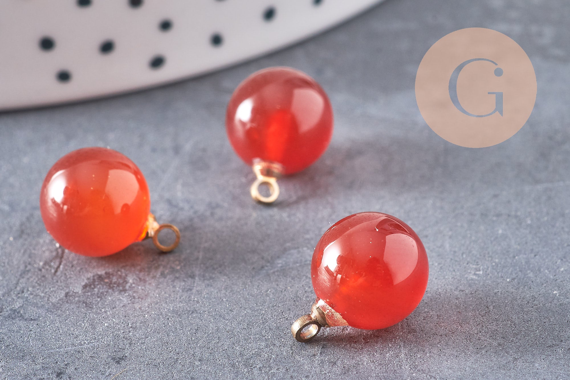 Round carnelian drop pendant, gold support, natural stone jewelry creation, natural stone pendant, 14mm, unit