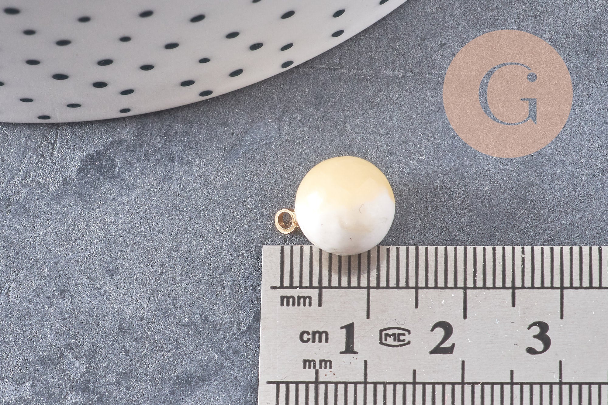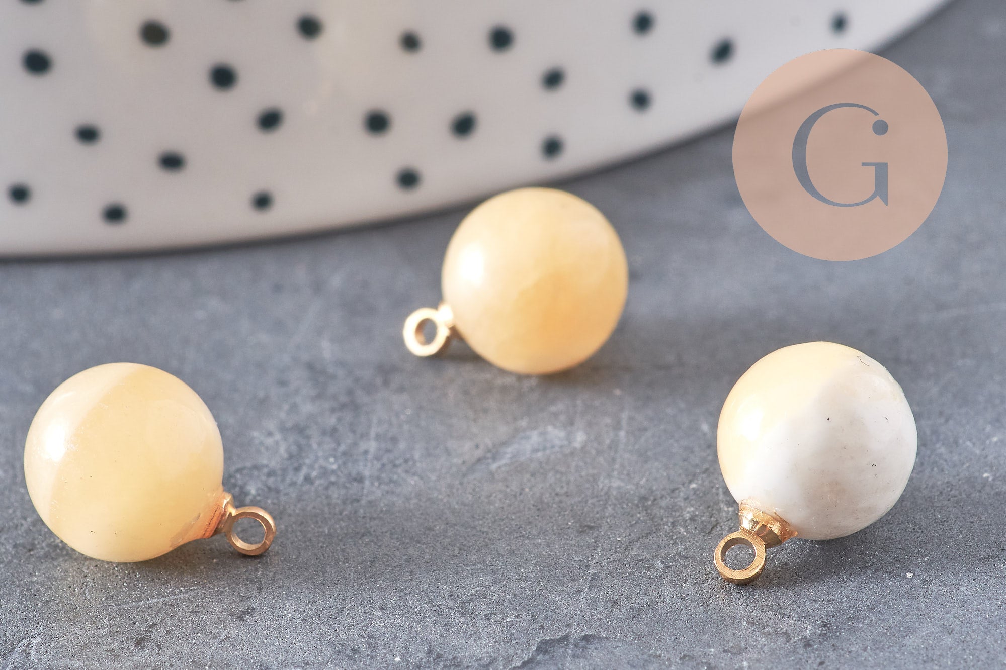 Natural topaz jade round drop pendant, gold support, natural stone jewelry creation, natural stone pendant, 14mm, unit