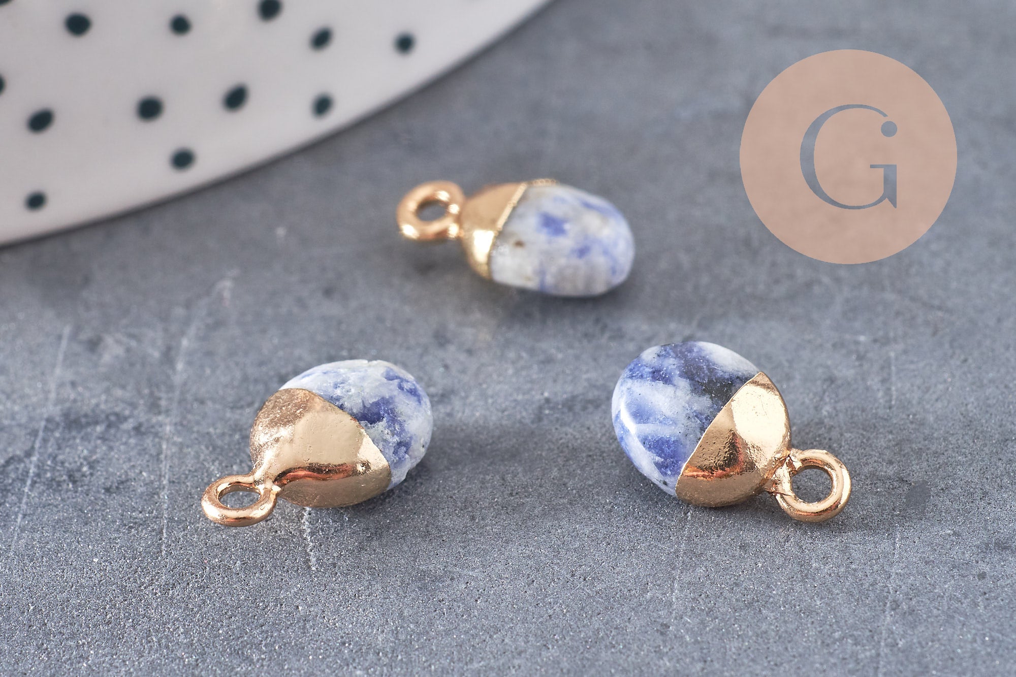 Fall in love with this discreet drop-shaped natural sodalite pendant mounted on a gold-plated iron base. Perfect for creating elegant necklaces, earrings, or refined bracelets.