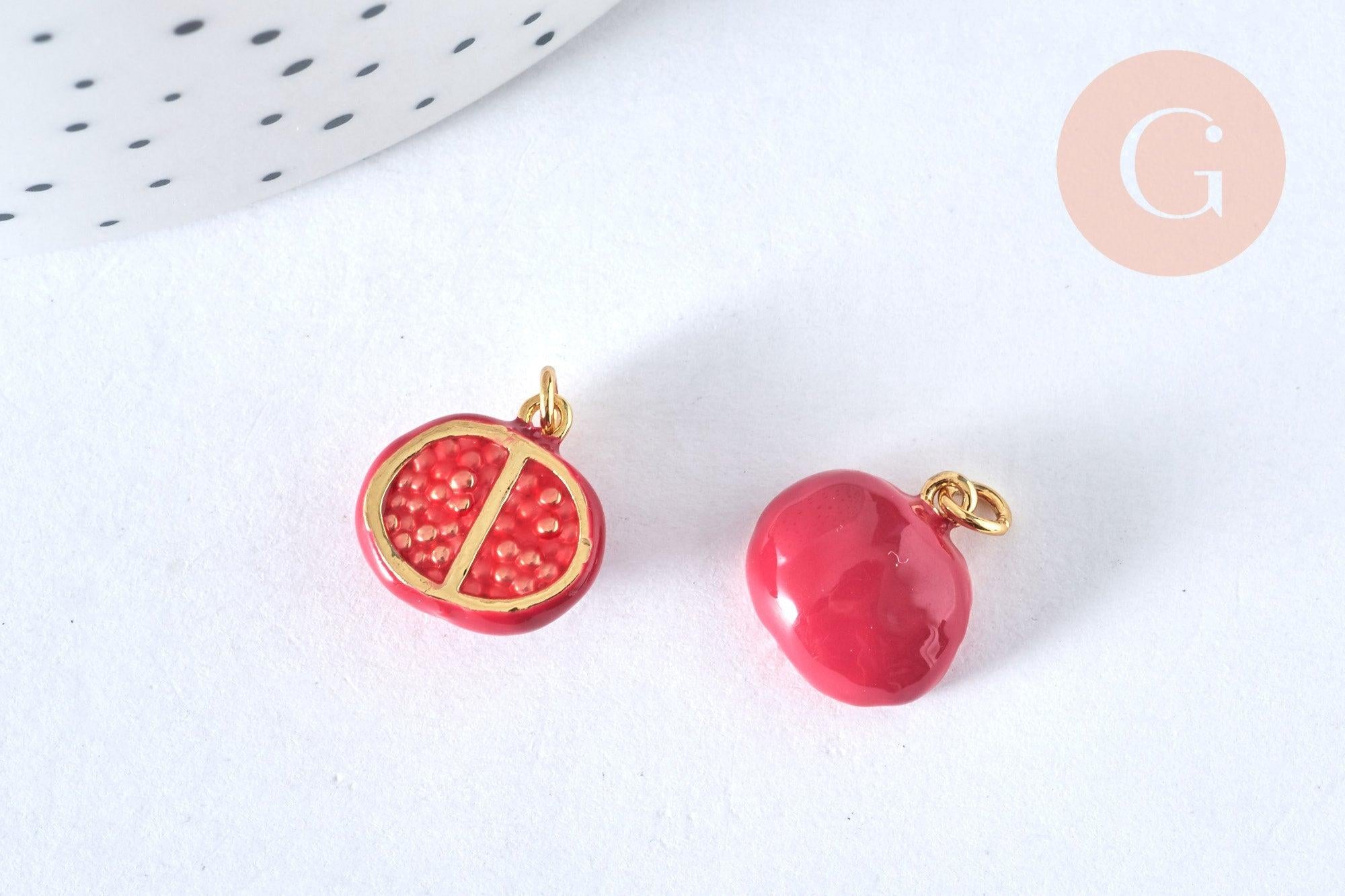 Pomegranate pendant in golden brass 18k gold, sold with its ring, to create DIY costume jewelry for this summer. Ideal for making charm bracelets.