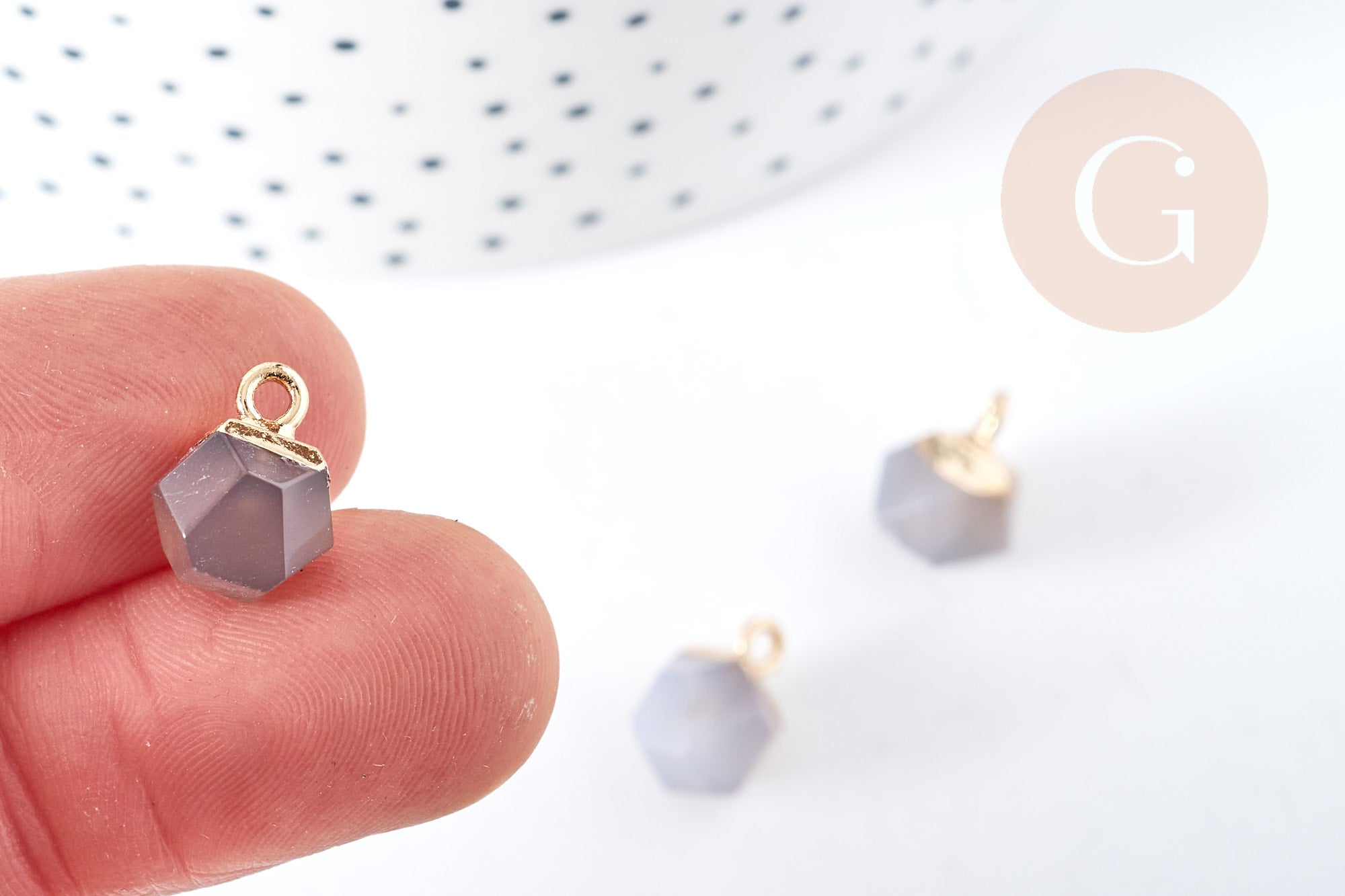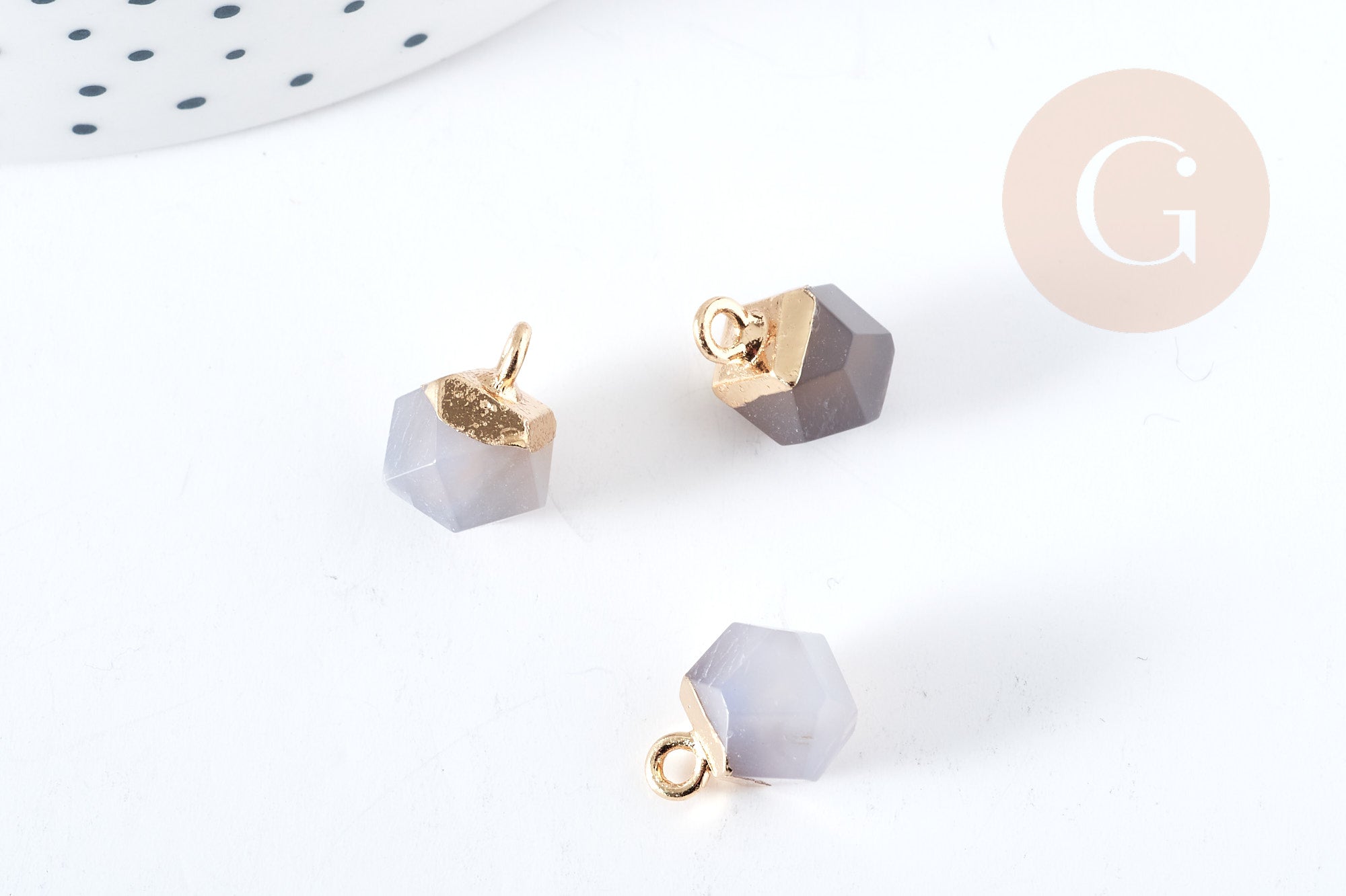 Pendentif hexagone agate grise naturelle fer doré 11mm,pendentif bijoux pierre naturelle, x1 G8501