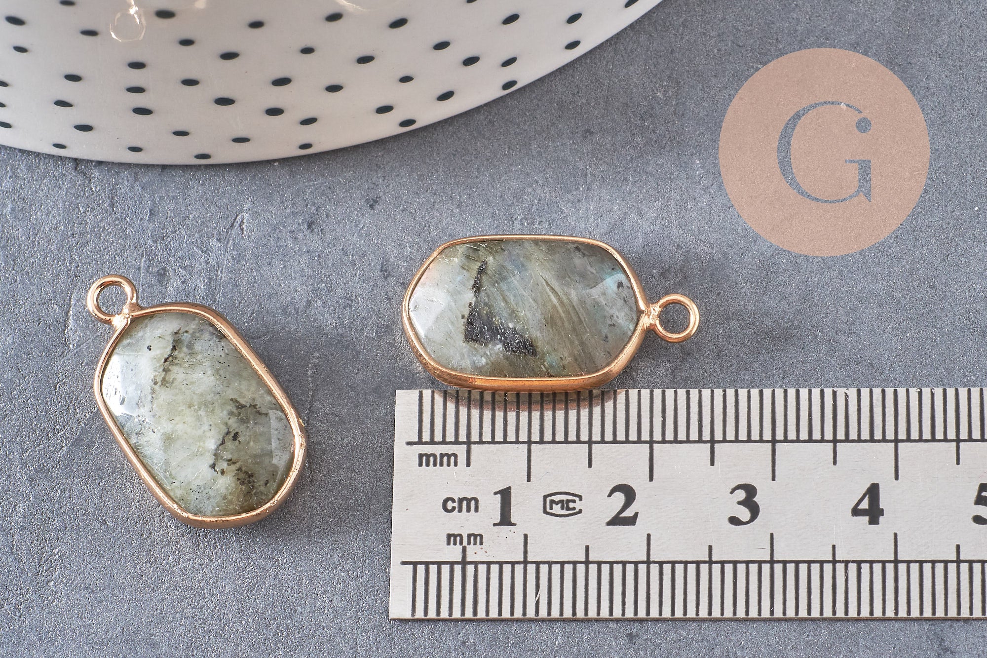 Natural blue labradorite pendant on a gold-plated iron support, to make trendy necklaces, earrings or sautoirs
