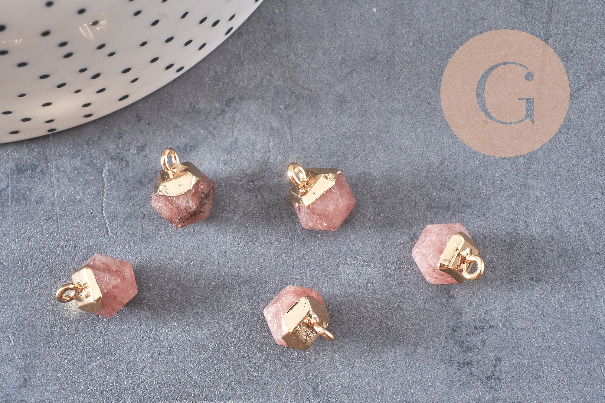 Strawberry quartz hexagon pendant, jewelry pendant, stone pendant, natural strawberry quartz, strawberry quartz pendant, 11mm, unit