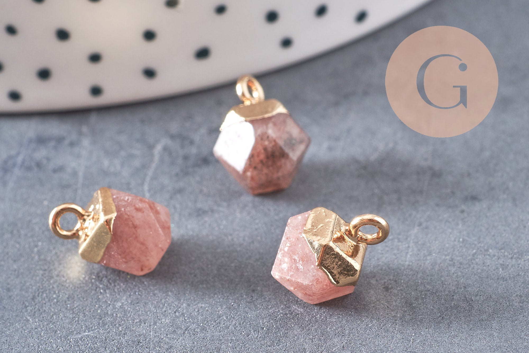 Fall for this very discreet little strawberry quartz pendant with its golden iron support.