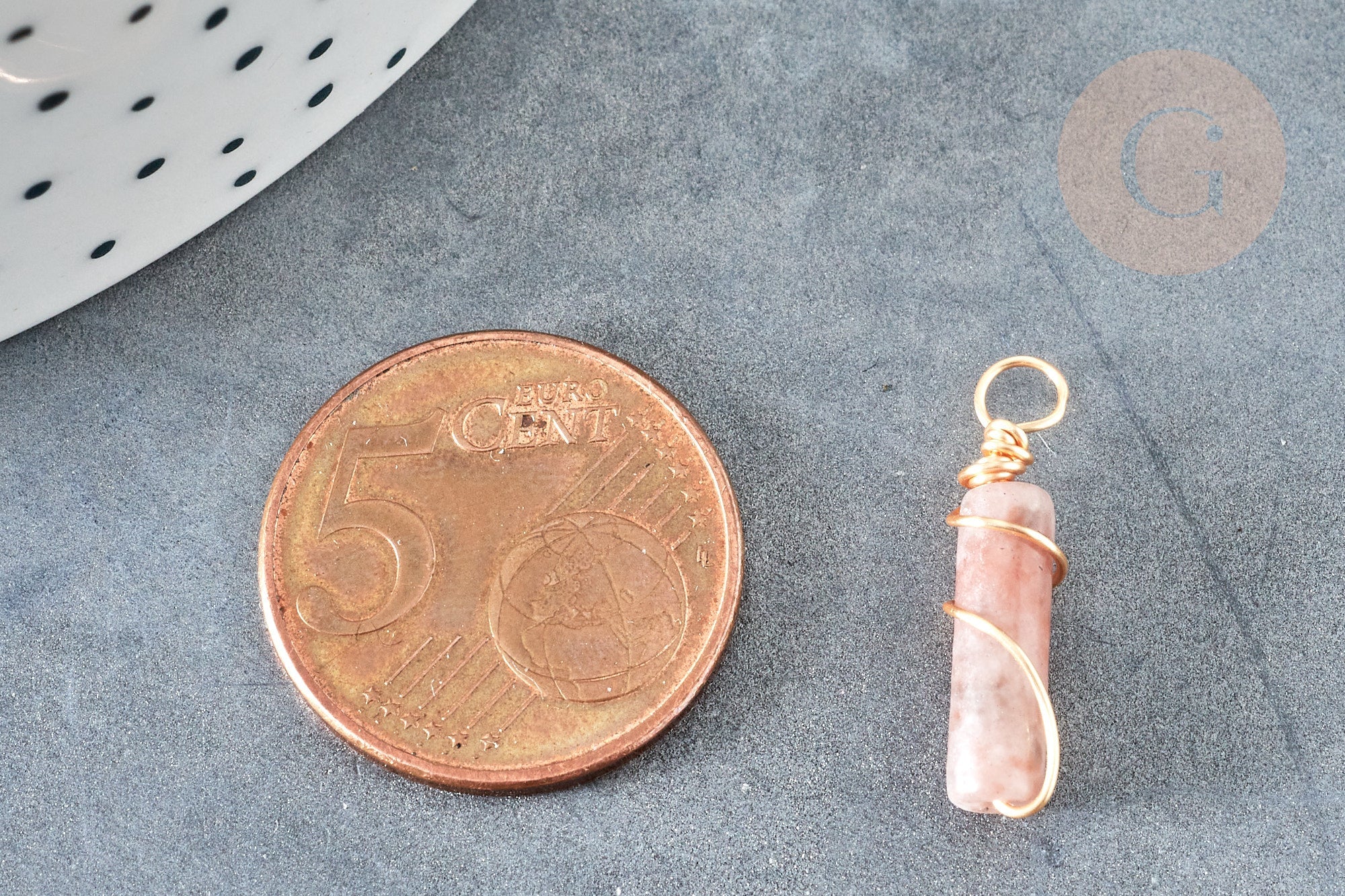 Pendentif tube Jade naturel marron support cuivre doré 20~21x5mm, pendentif pierre, x1 (G8335)
