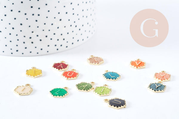 EP Hexagon pendant initial letter zamac gold colored enamel 18k nickel free 17.5mm, initial pendant letter word first name, x5 G2114