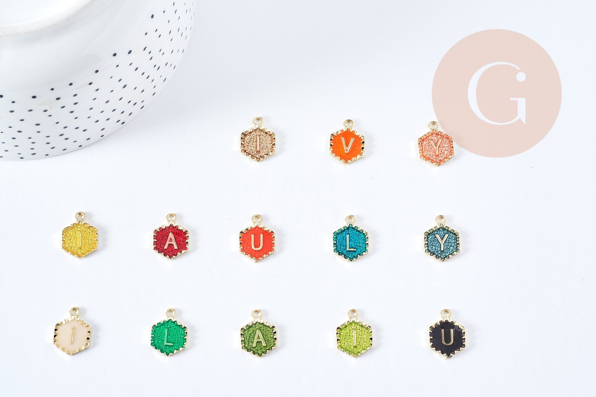 Adopt this hexagon initial letter pendant in 18k gold-plated zamac with colored enamel They are custom-made in our workshops using Tutti Frutti resins. How to use these adorable personalized initials? 1. Worn on a simple gold chain or a fancy...