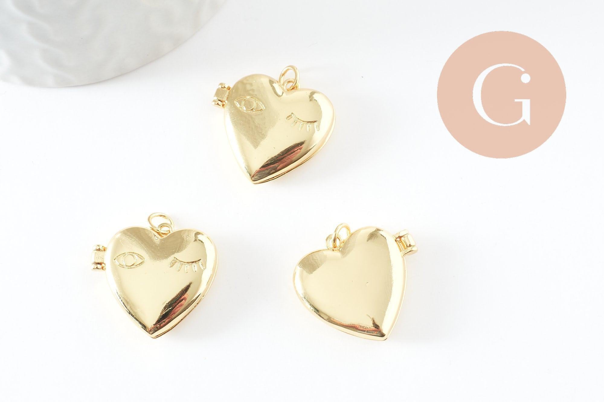 This heart-shaped locket pendant is a contemporary work of art, featuring a face drawn on an 18K gold-plated brass locket.