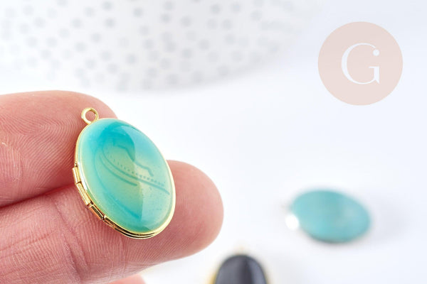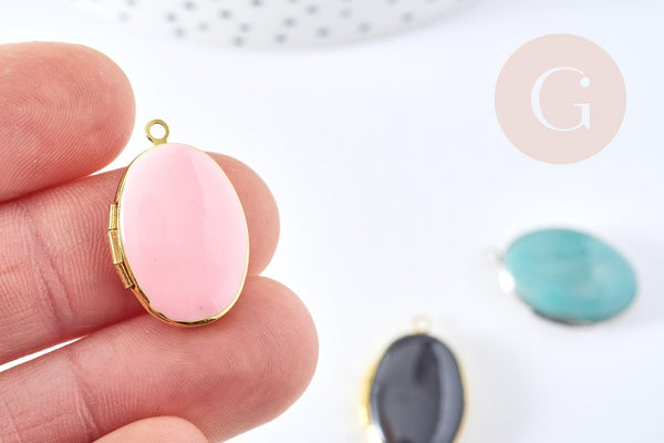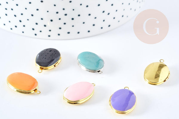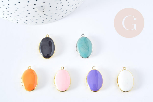 This oval brass locket pendant is available in a gold or silver finish and measures 24mm. The enamel gives it a very trendy vintage look.