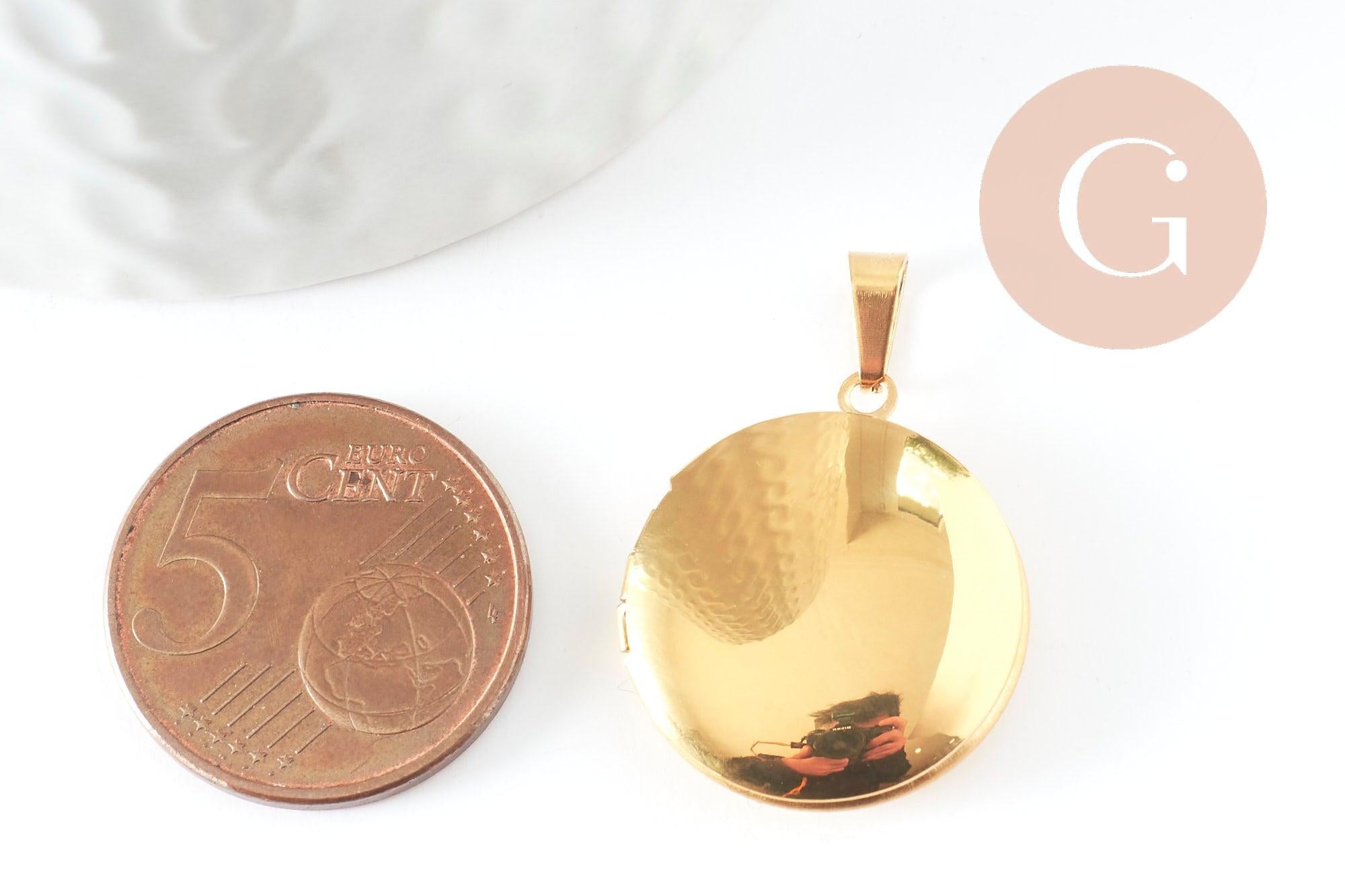 Carry your memories close to you with this round locket pendant in 316 stainless steel, 18K gold finish.