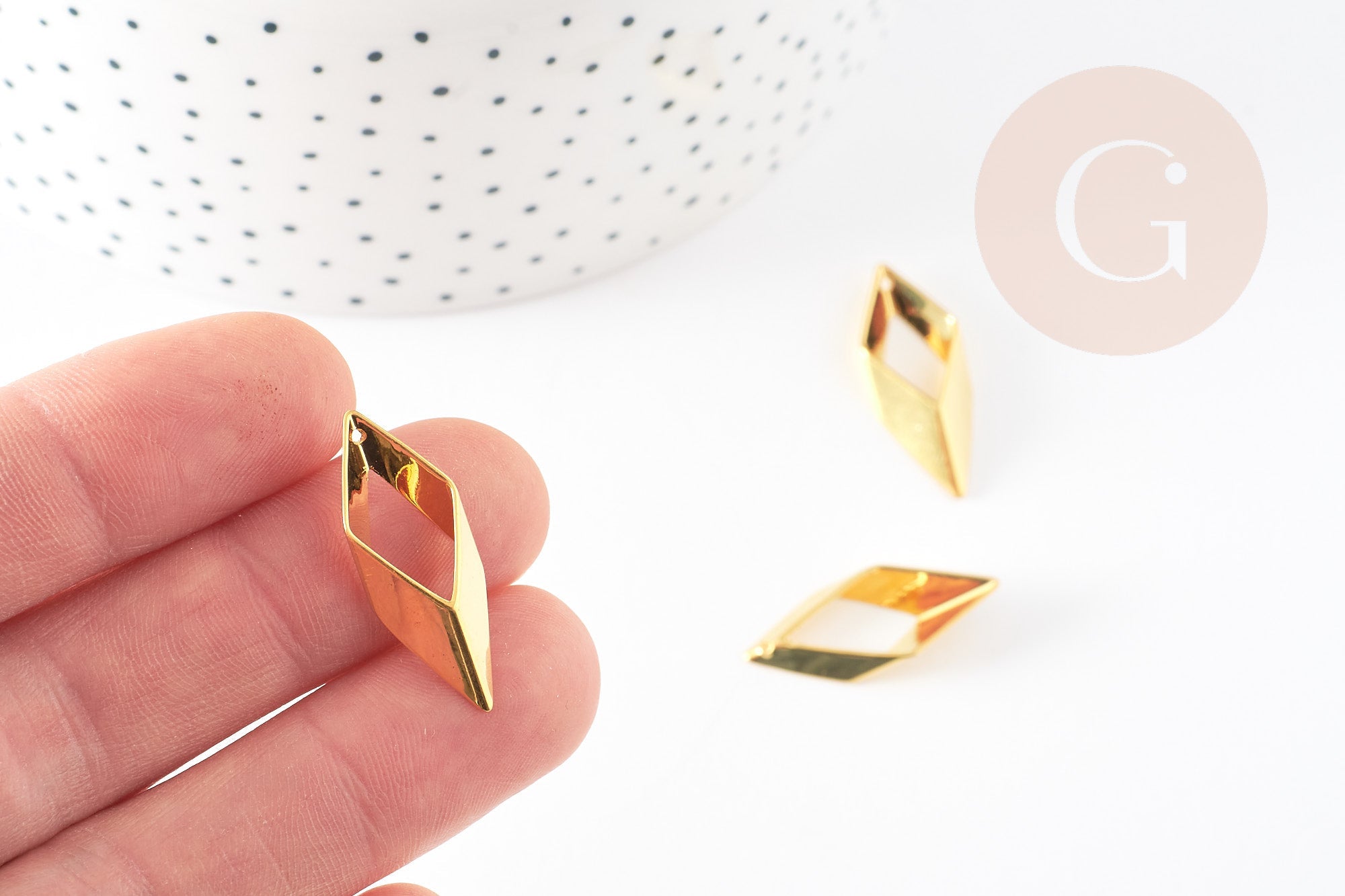 Adopt these small diamond pendants in gold-plated brass right away to create your own little pieces of jewelry: ideal for creating earrings, bracelets and necklaces.