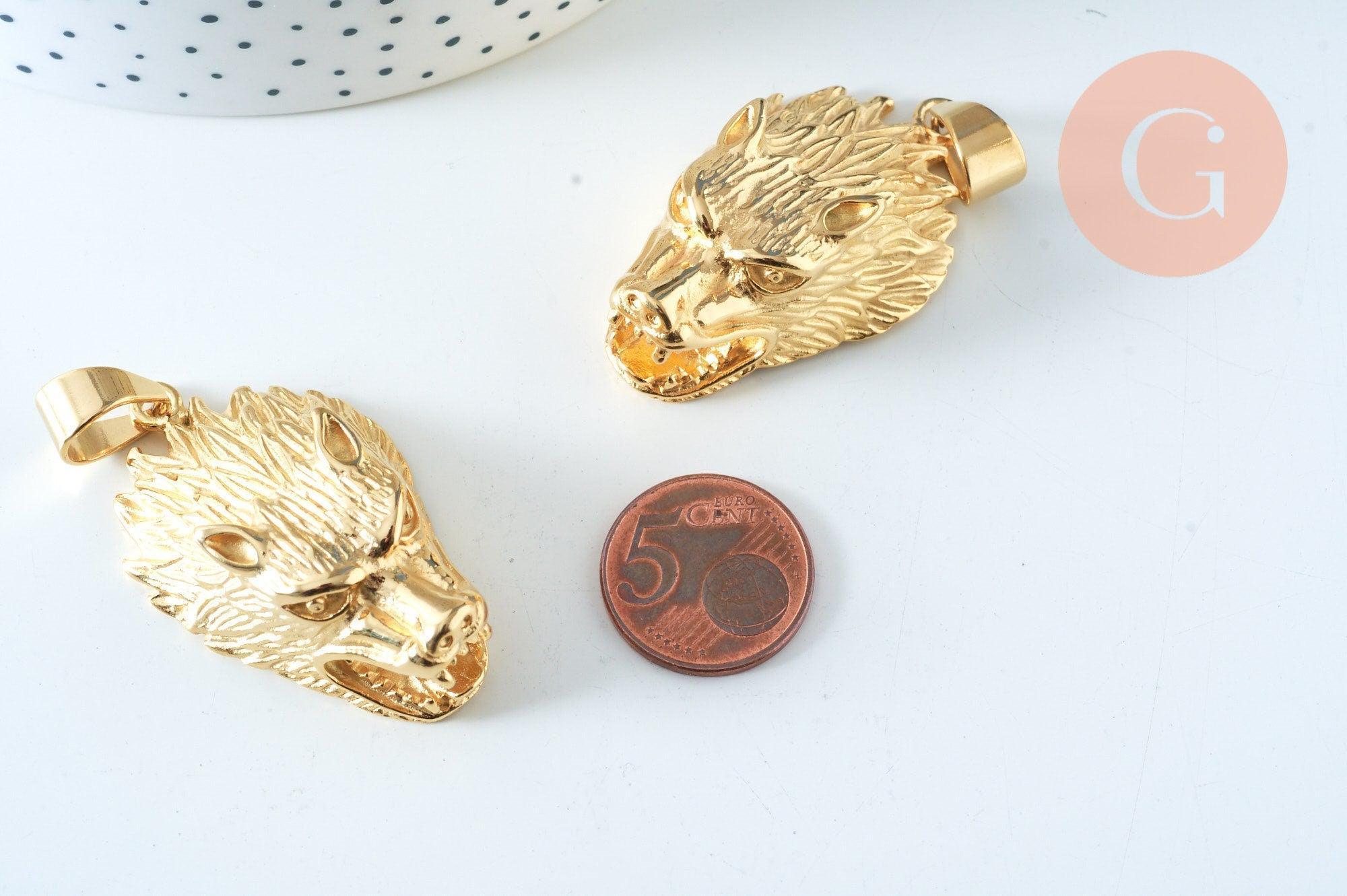 Imposing and majestic, this gold-plated stainless steel wolf pendant will enhance your DIY creations with a powerful and trendy animal touch. Its bold style and high-quality gilding make it an ideal centerpiece for your contemporary charm necklaces or talismans.