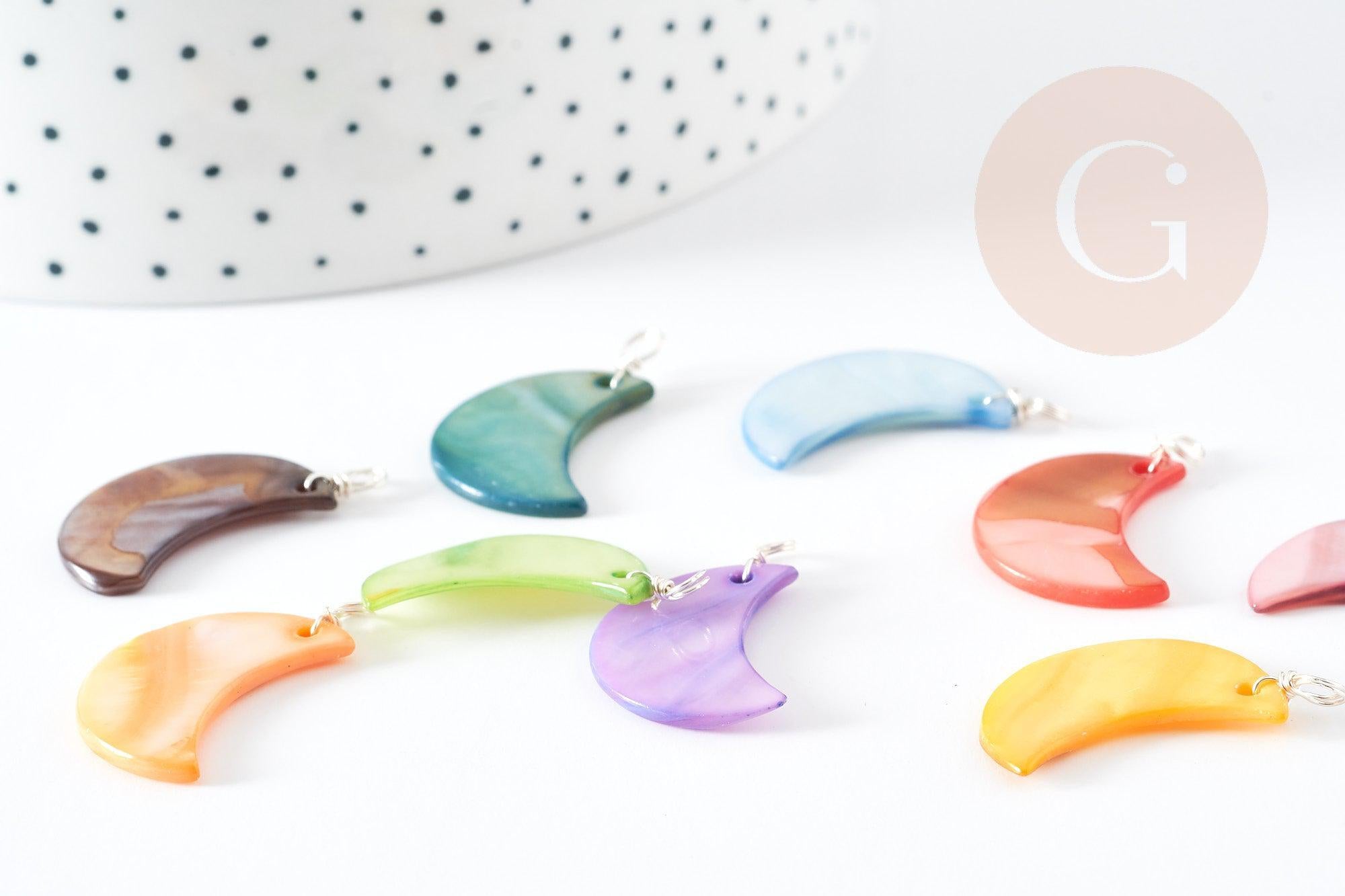 Awaken your creativity with our multi-colored mother-of-pearl moon pendant , mounted on a 28.5mm silver-plated copper support.